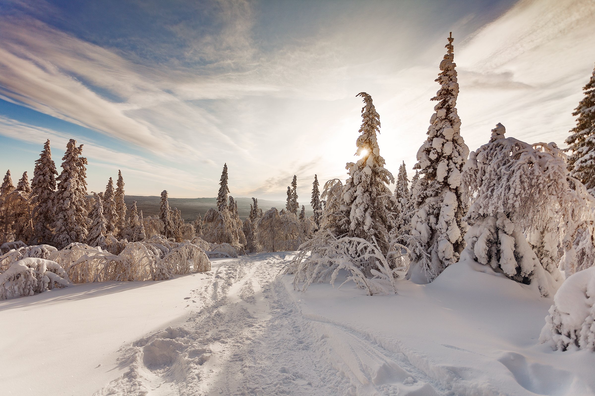Урал, тайга, Южный Урал, горы, снег, зима, небо, закат, Владимир