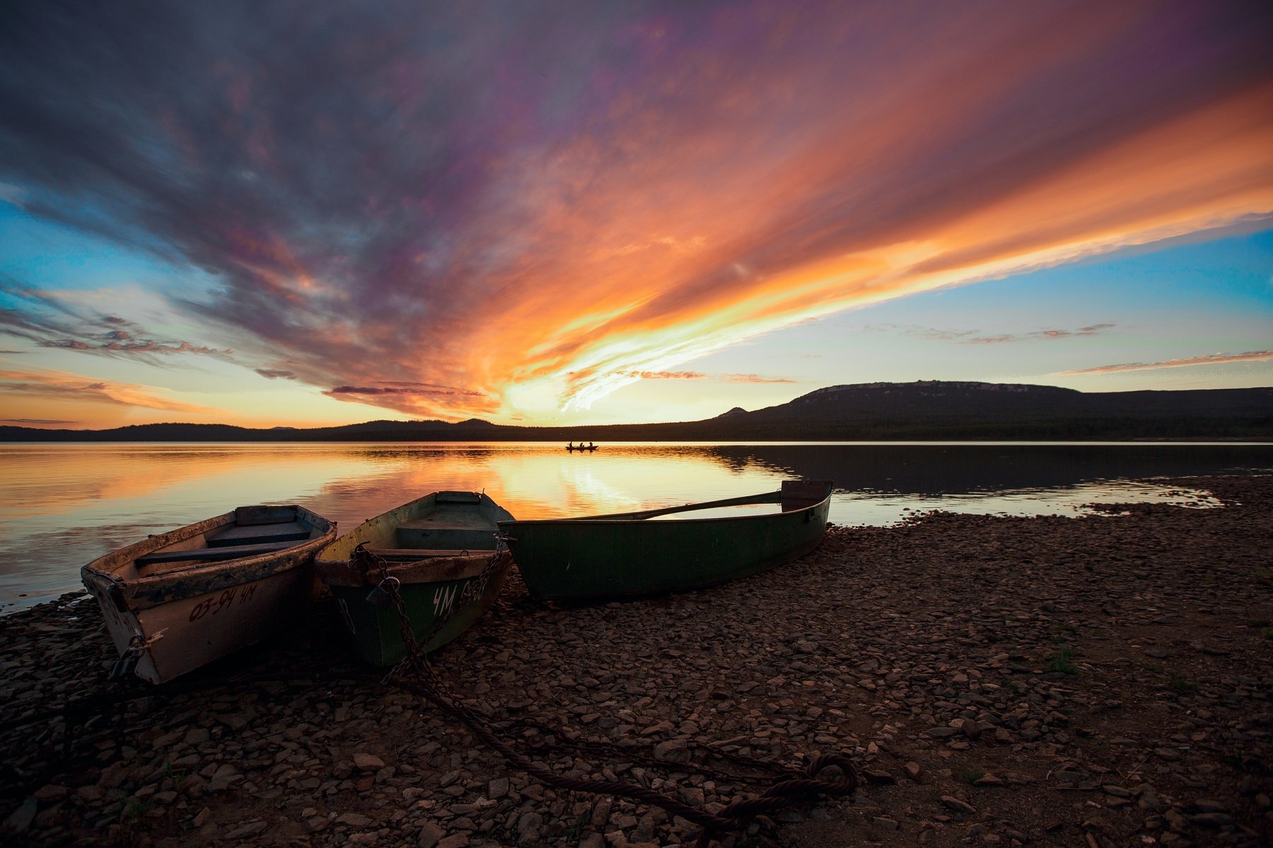 Закат, лодки, озеро, горы, зюраткуль, урал, Владимир