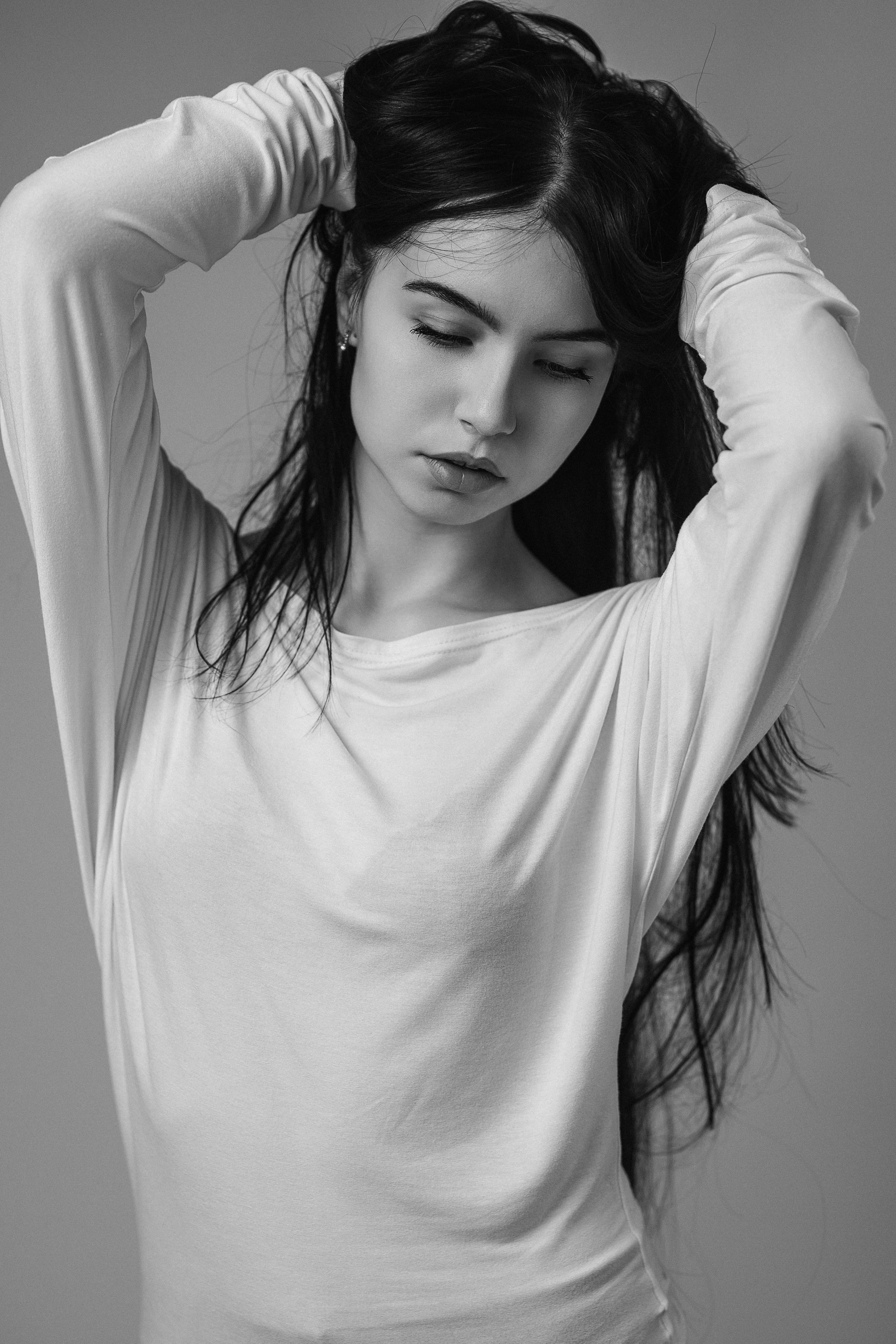 Свет мягко моделирует черты, композиция уравновешена — образ выглядит естественно и выразительно. 🖤