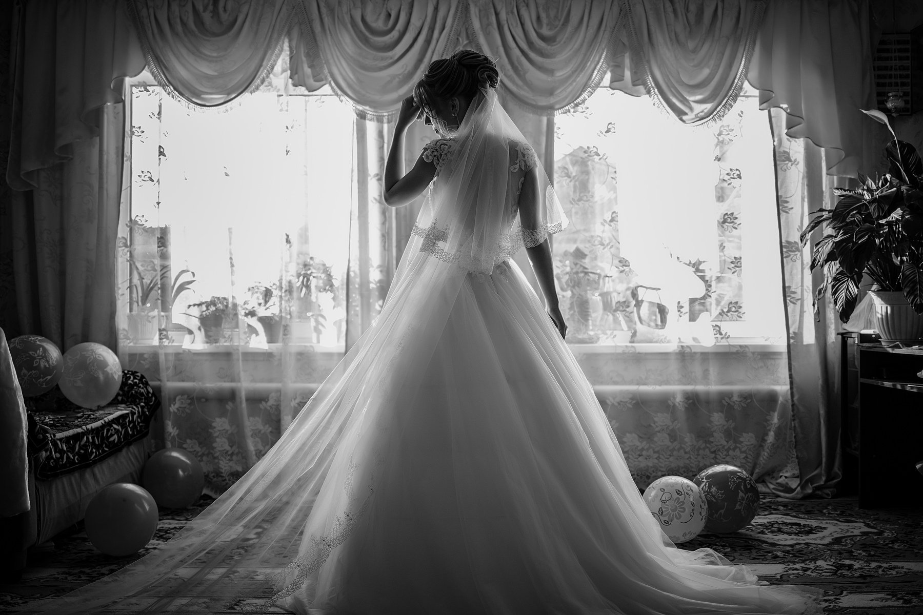 свадьба, свадебная фотосессия, невеста, свадебный букет, свадебное платье, счастье, любовь, портрет, чёрно-белое фото, чб, Владимир Васильев