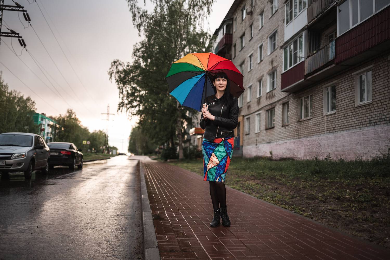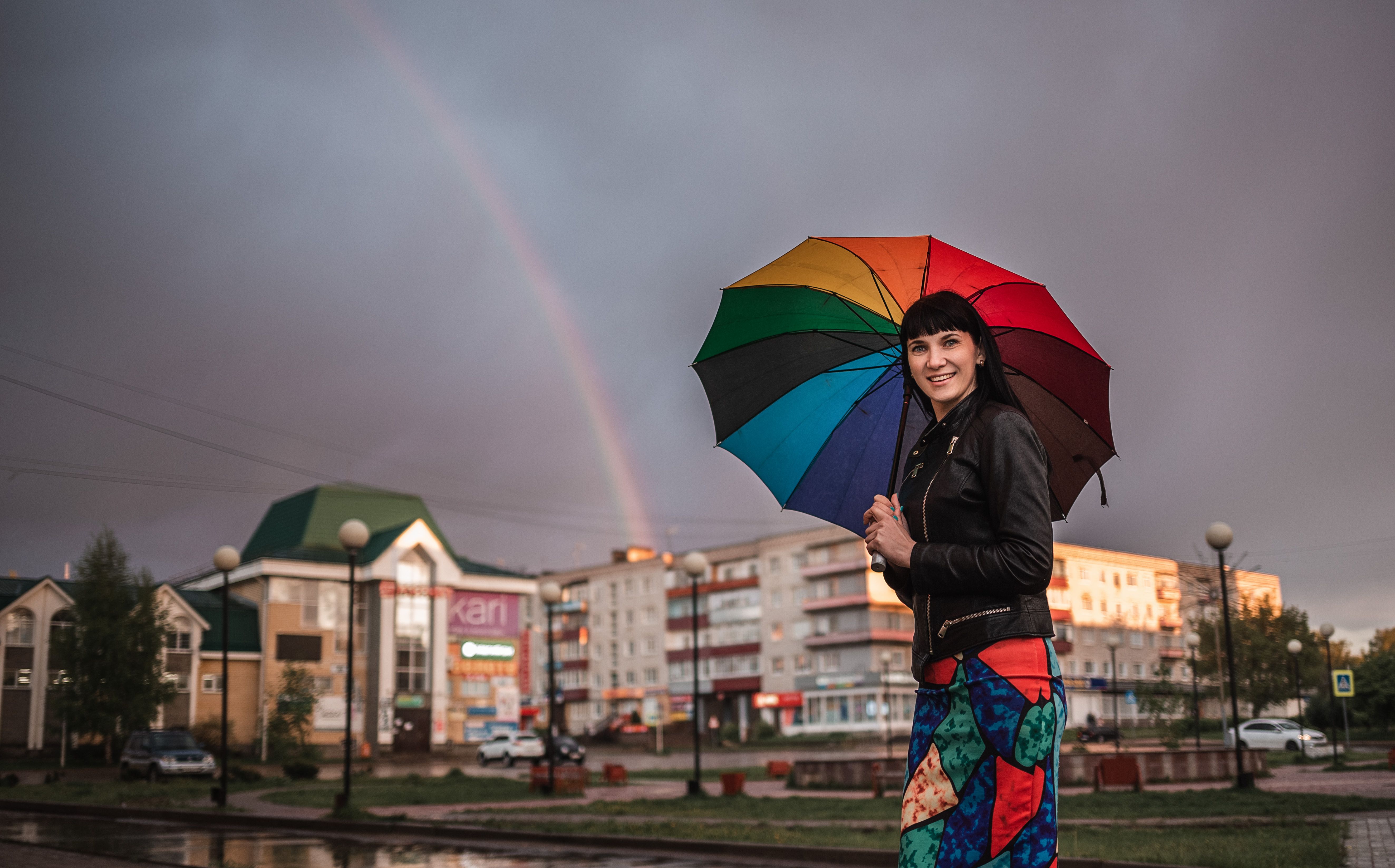 девушкапрогулкакулебакиlandscapeвеснагородзакатвечеррадугаspringtownstreetsunsetrainbow