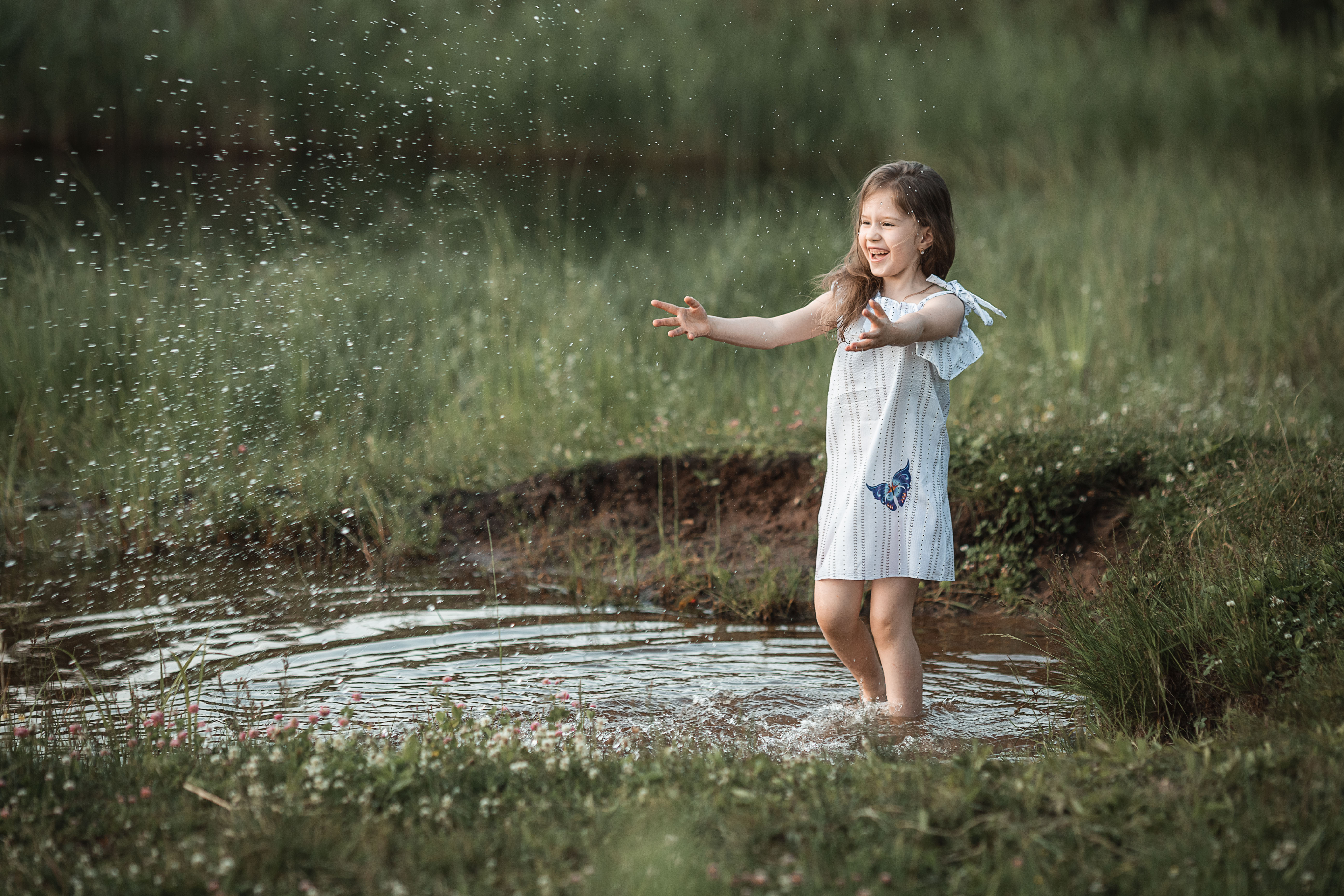 девочка, фотосессия, лето, прогулка, репортаж, little girl, summer, portrait, портрет, закат, sunset, пруд, pond, вода, water, игры, забавы, счастье, happy, Владимир Васильев