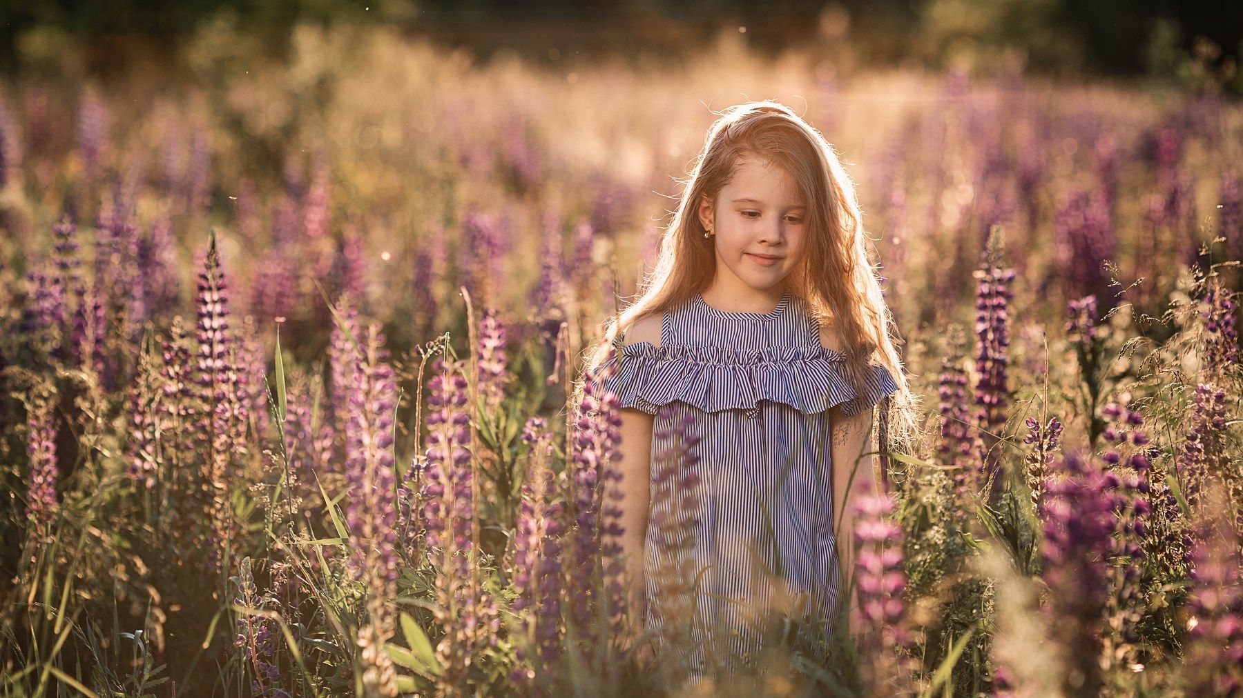 девочка, фотосессия, лето, прогулка, репортаж, girl, summer, portrait, портрет, люпины, закат, sunset, Владимир Васильев