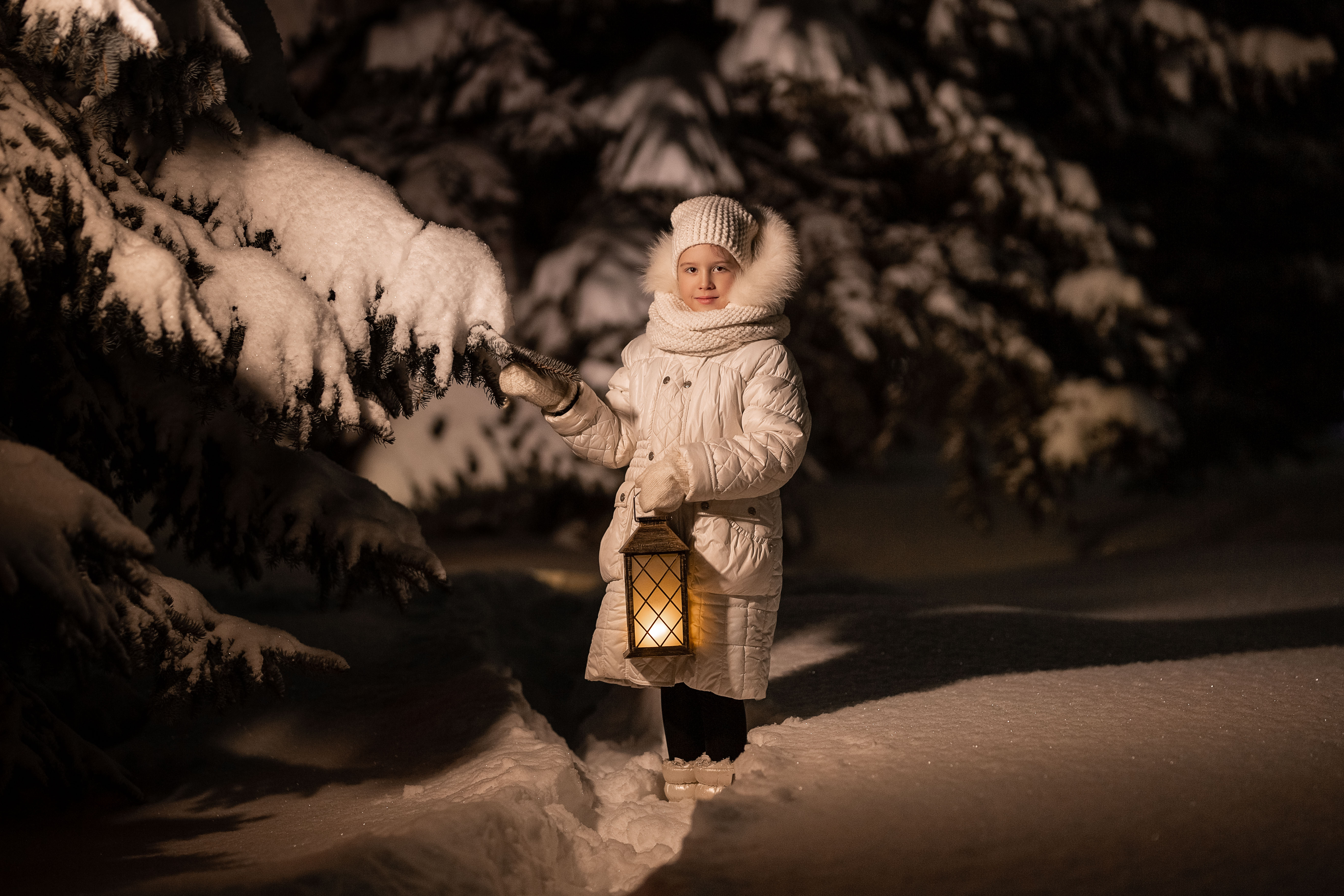 девочка, зима, фотосессия, снег, вечер, лес, ель, свет, фонарь, зимняя фотосессия, child, girl, winter, snow, light, winter photo, forest, Владимир Васильев