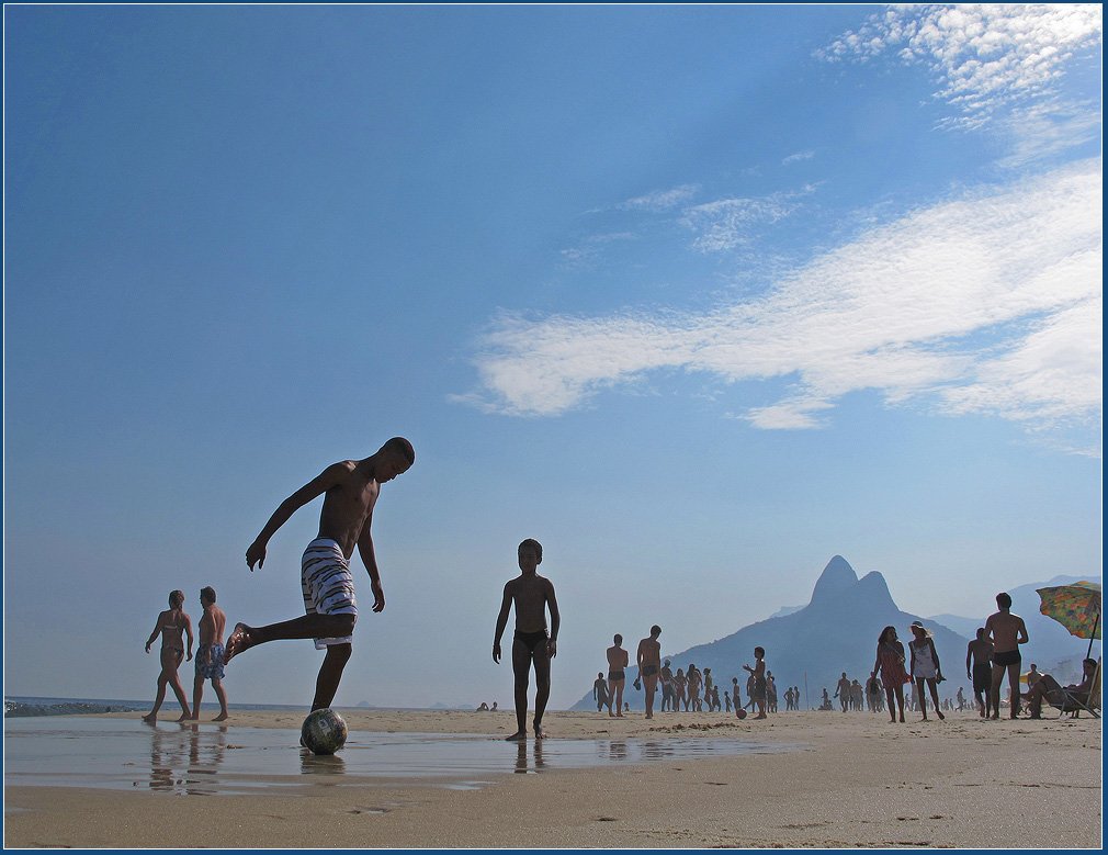 На пляжах Рио де Жанейро...на Капакобане,Ипанеме, Леблоне...каждый день с утра до ночи сражаются сотни команд. От совсем еще детей до пенсионеров...они живут этим, дышат и любят эту игру.