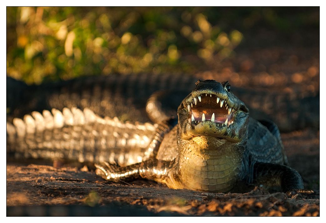 Опасность была минимальная. Вода из болота начала уже уходить, и в протоках была масса рыбы. Кайманы еле передвигались от обжорства. Пару раз на меня только и зашипели...