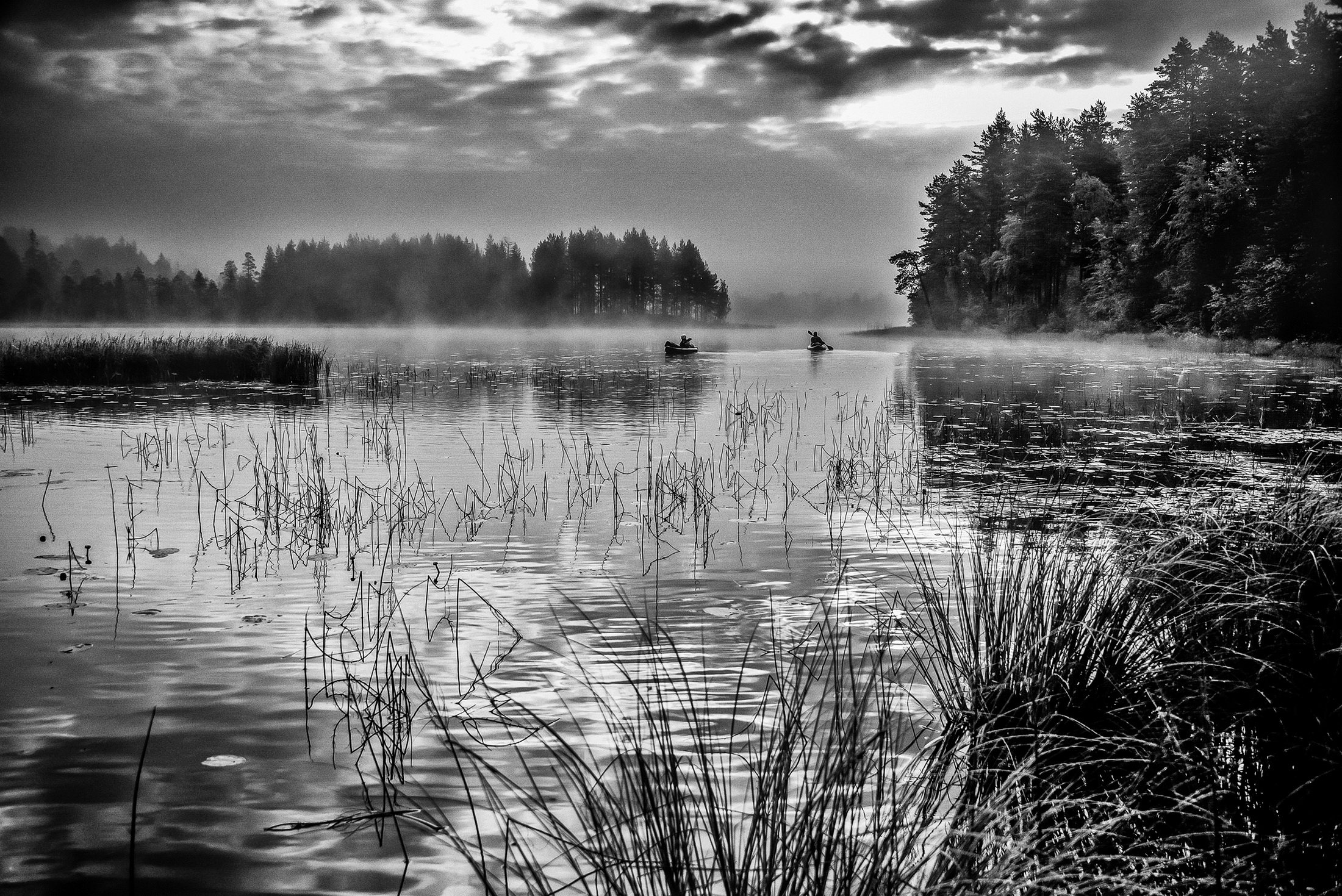 карелия, рассвет, черно-белое, лодка, гребец, река, лето, Владимир Брагилевский