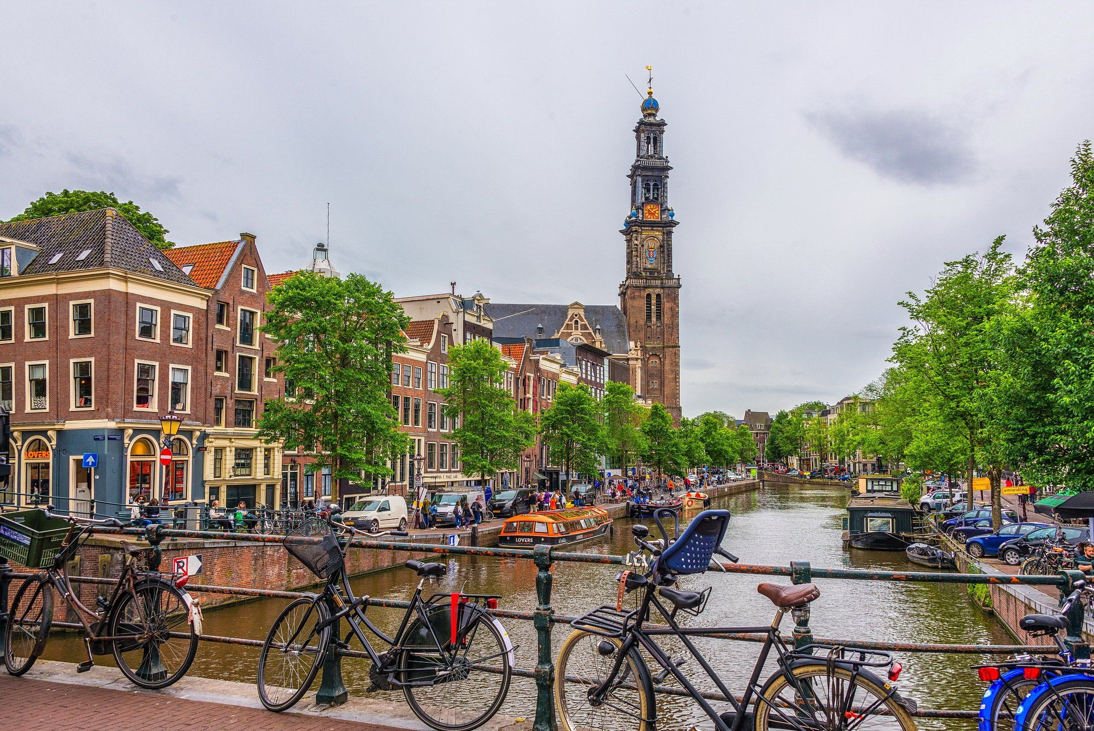 amsterdam, zuiderkerk, channel, buildings, trees, Владимир Брагилевский