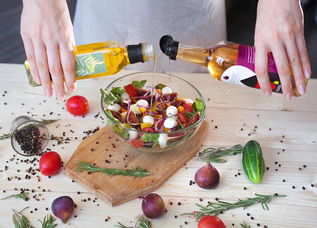 свежий салат с моцареллой и инжиром, заправленный инжирным уксусом и оливковым маслом, ароматизированным розмарином