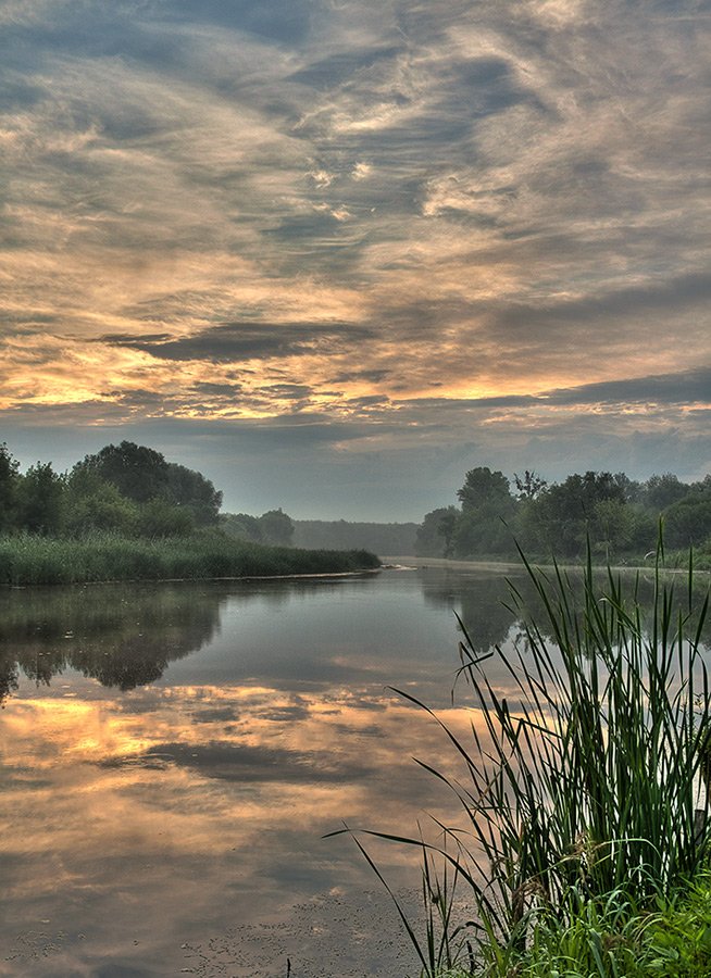 солнце, восход, река, дымка, туман, облака, Владимир Костылев
