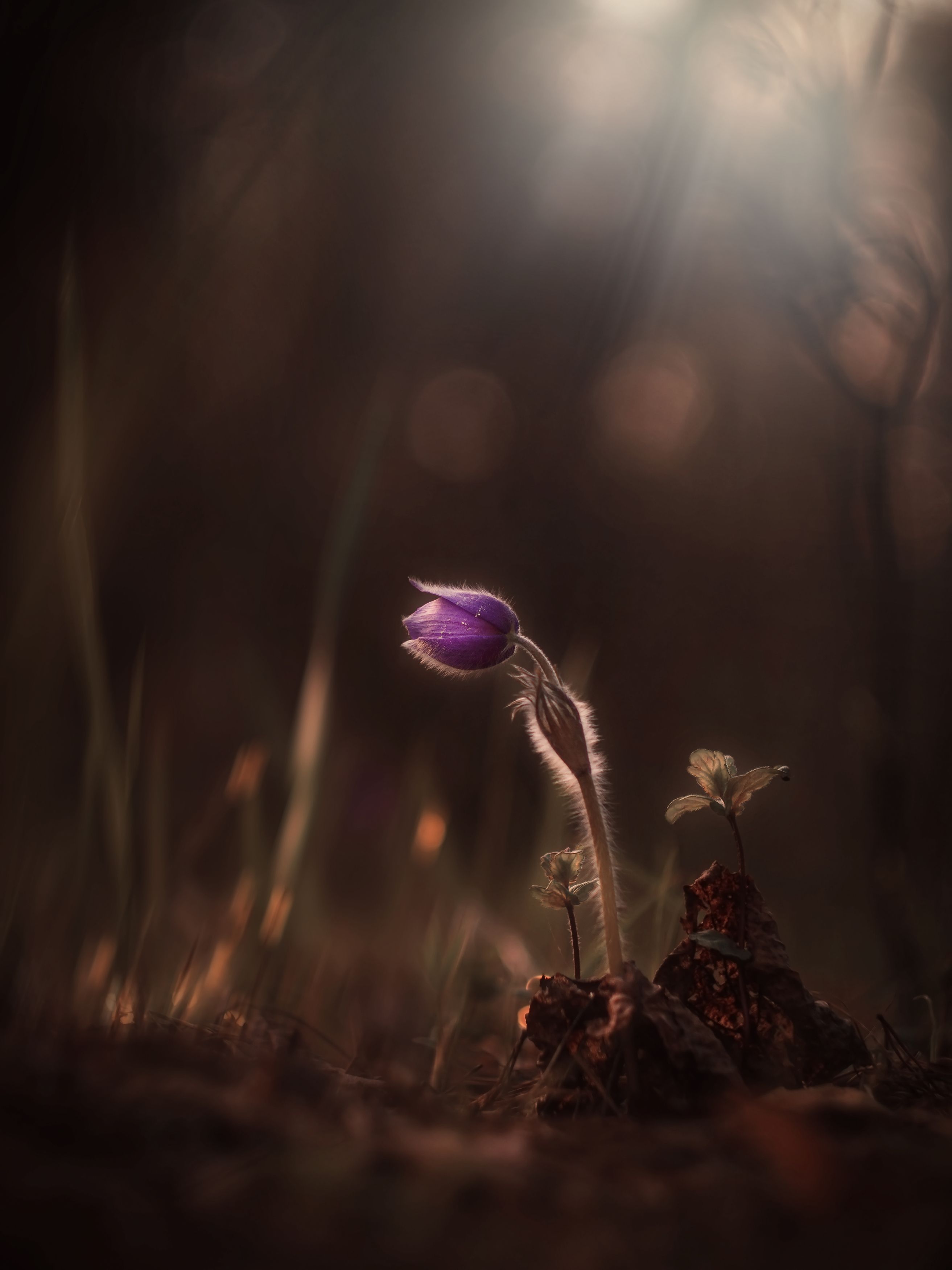 В тихом уголке леса, где тени еще не отступили перед солнцем, маленький фиолетовый цветок тянется к лучам света. Этот момент — символ стойкости природы и начала нового сезона. Фотограф Lapshina Vladlena запечатлела эту хрупкую красоту, подчеркивая контраст между темнотой и светом, а также силу жизни, преодолевающей любые препятствия.