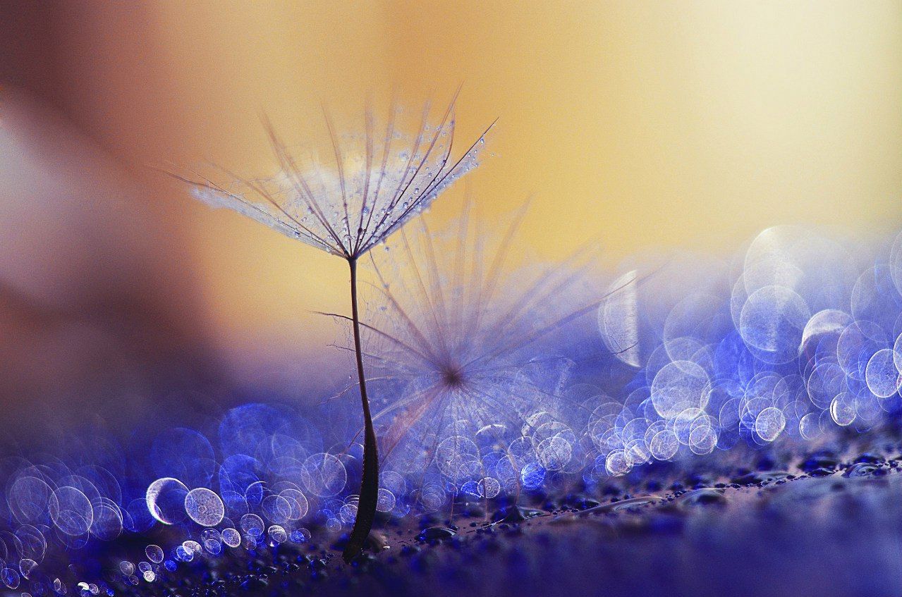 макро, красиво, одуванчик, синий, желтый, цвет, Лапшина Владлена