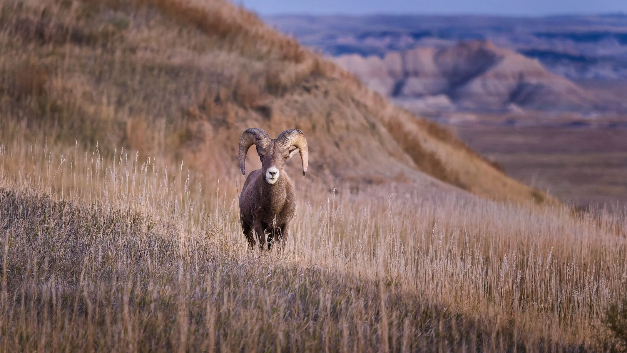 В последних лучах солнца, невесть откуда взявшийся толсторог был чудо как хорош.