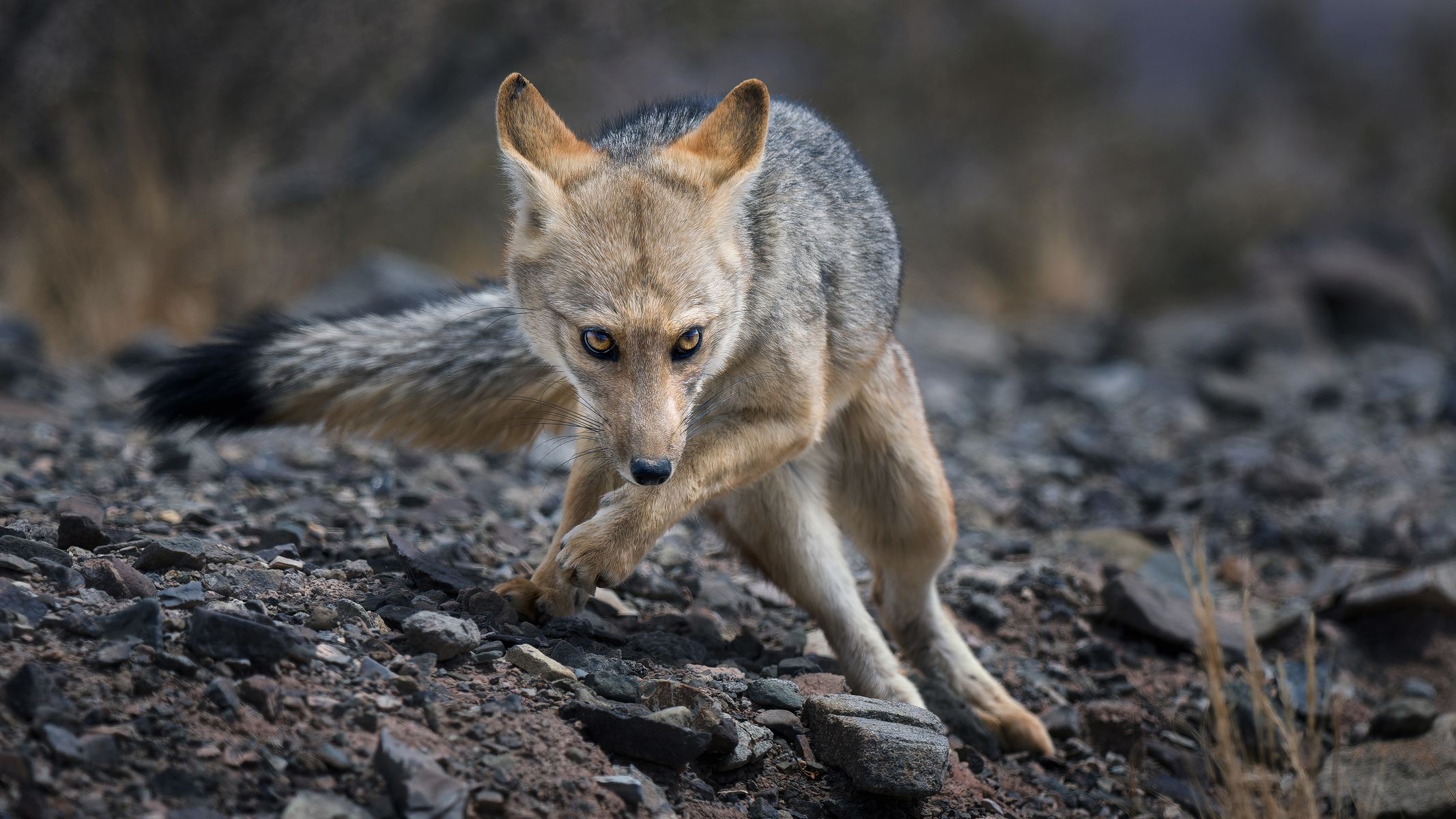На фото снят момент погони зорро за каким то грызуном.
