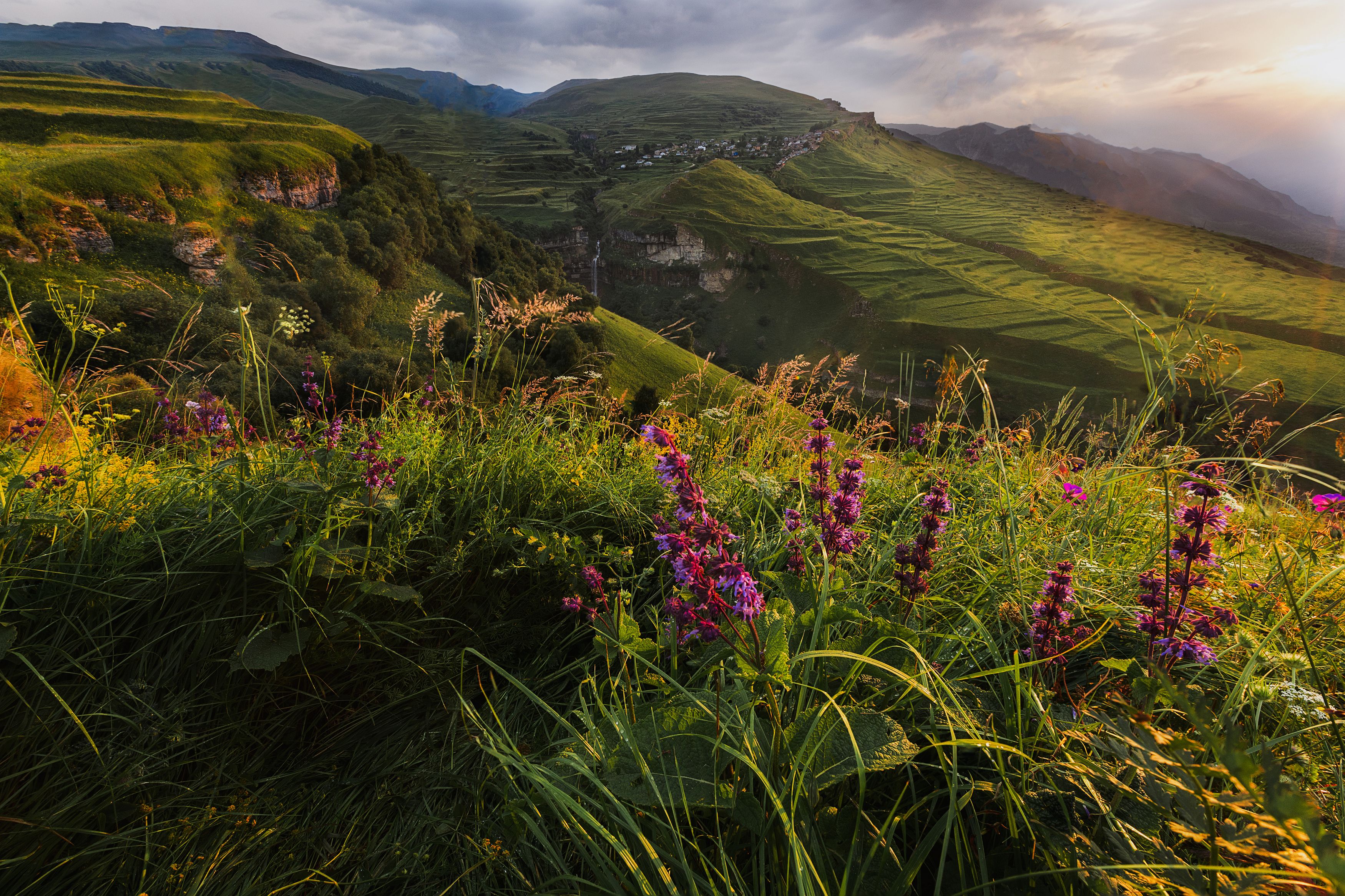 дагестан, горы, закат, водопад, терассы, хунзах, лето, Влад Рябинин