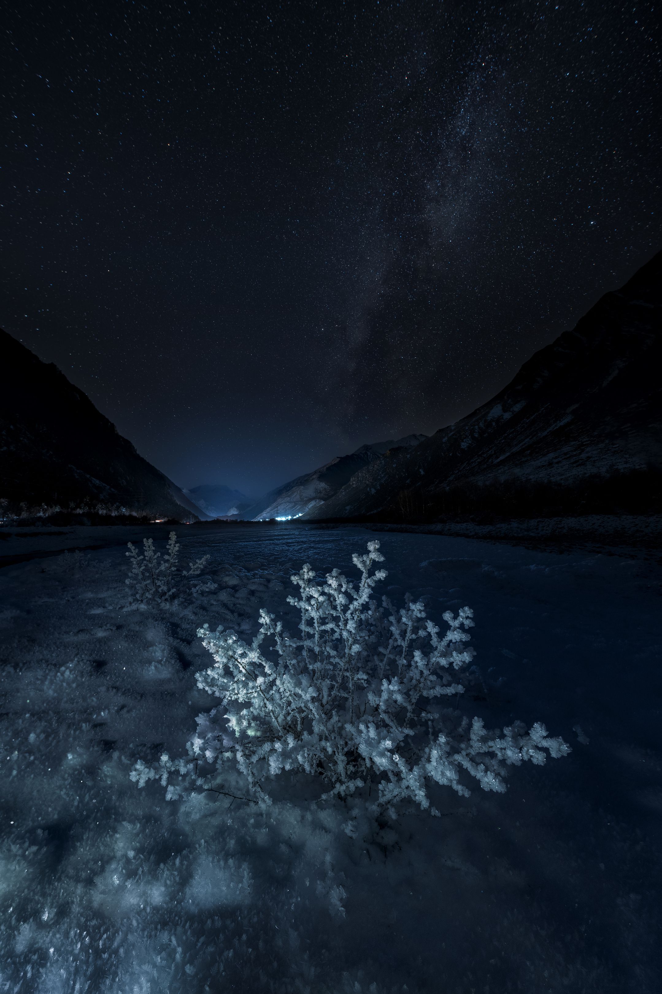 Ночь, горы, звезды, млечный путь, ночной пейзаж, астрофотография, кавказ, Приэльбрусье, снег, зима, Влад Рябинин