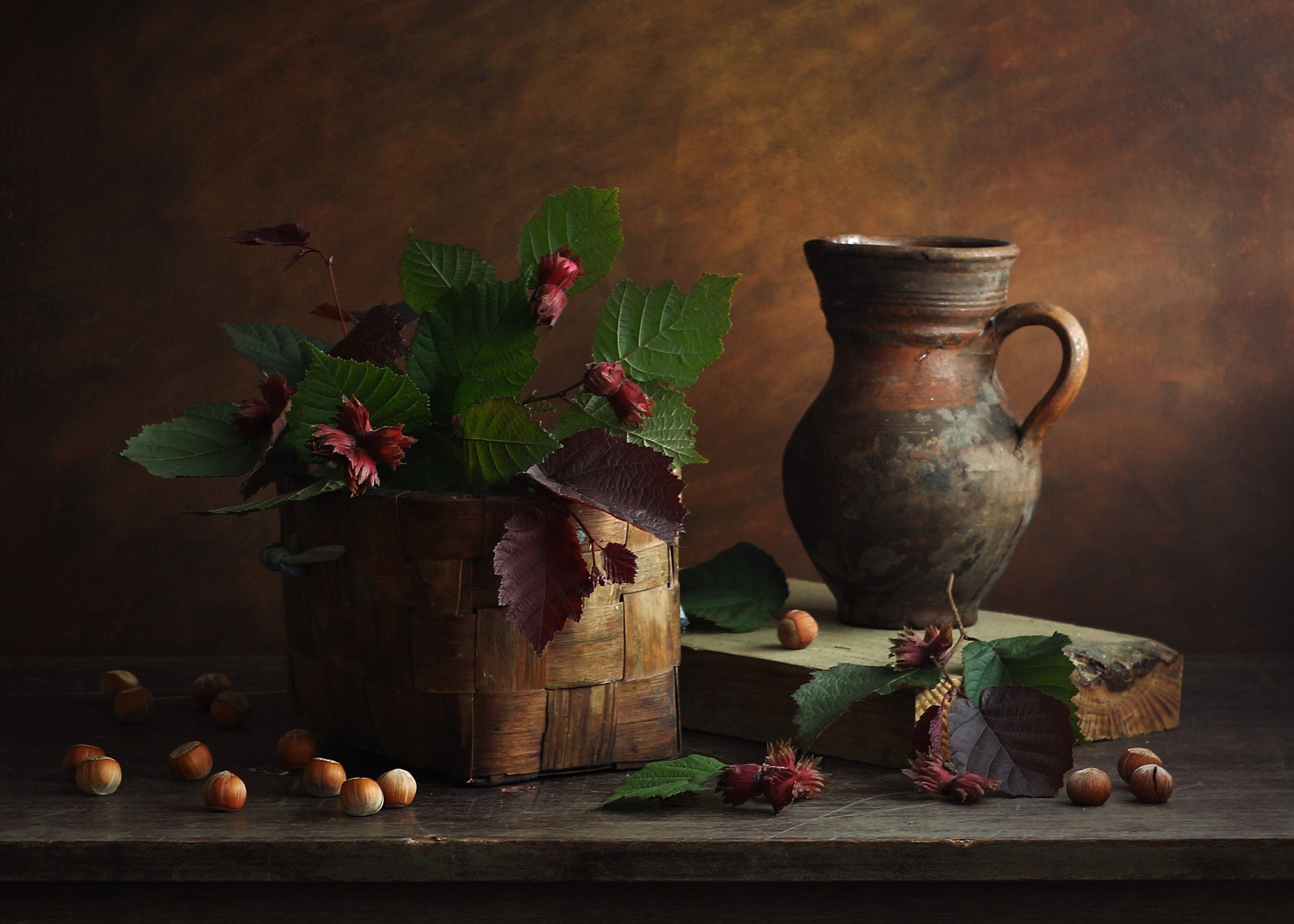 лукошко, орехи, кувшин, ветки орешника, Людмила Хрусталева*
