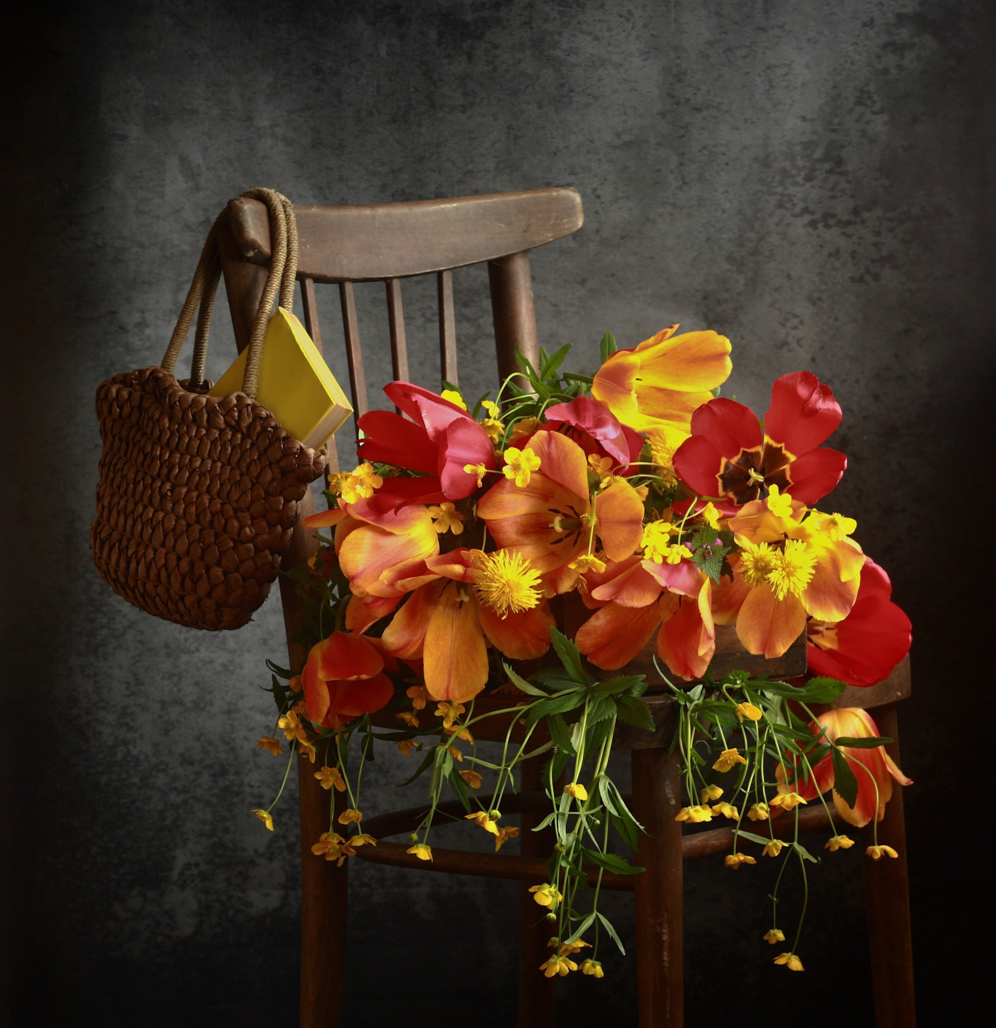 стул, букет тюльпанов сумочка, Людмила Хрусталева*