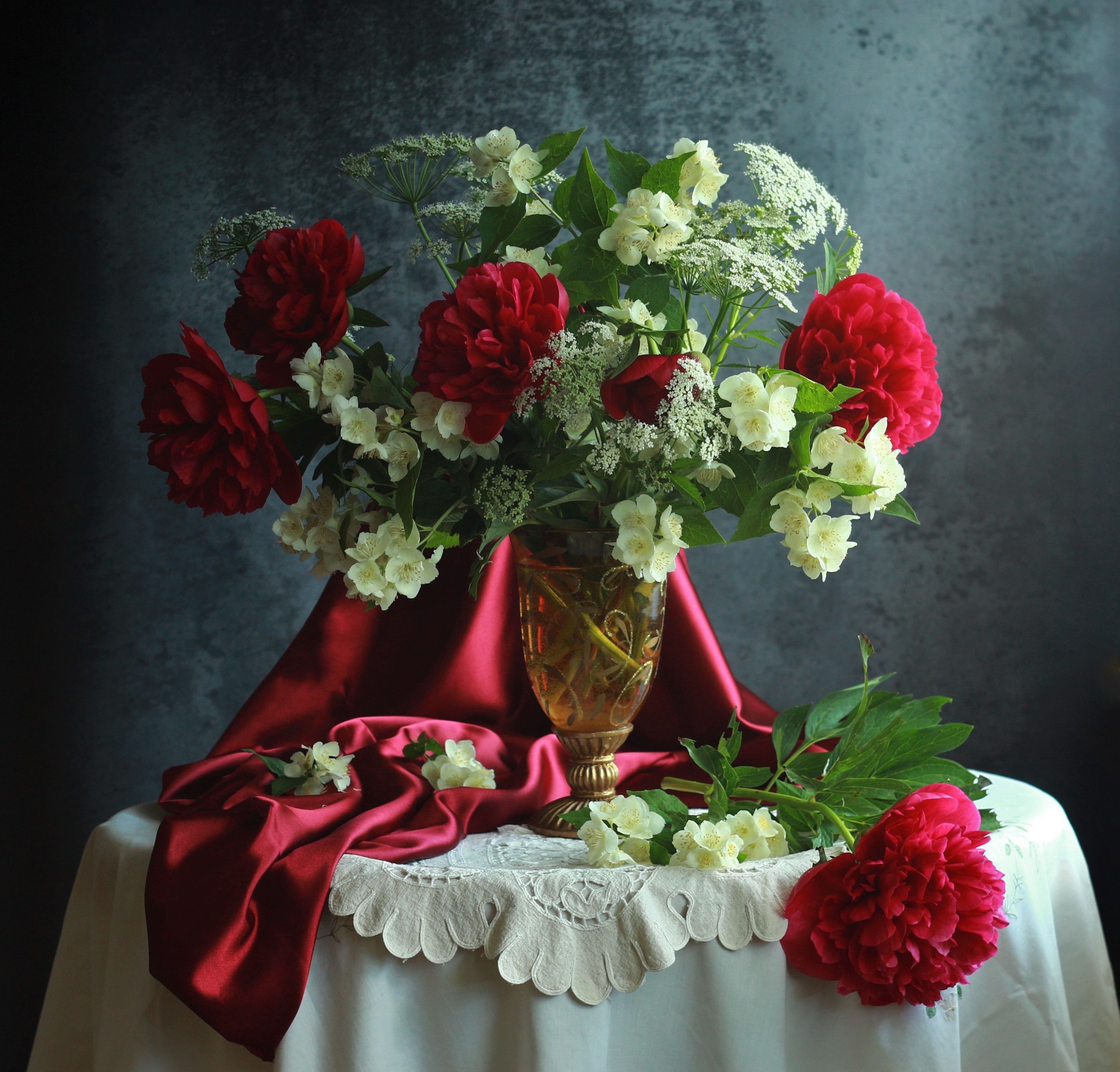 красные пионы красная ткань, Людмила Хрусталева*
