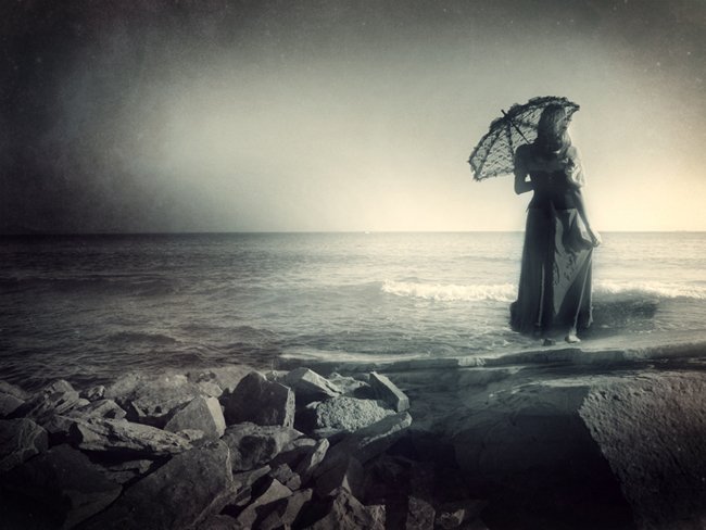 девушка, море, ожидание, ветер, буря, volavolko