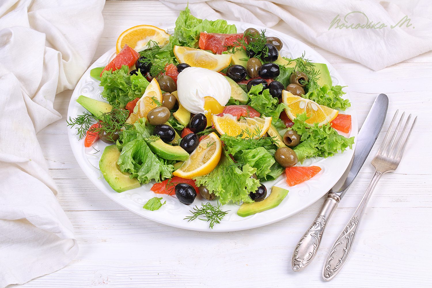 семга,авокадо,яйцо,пашот,оливки,салат, Марина Володько