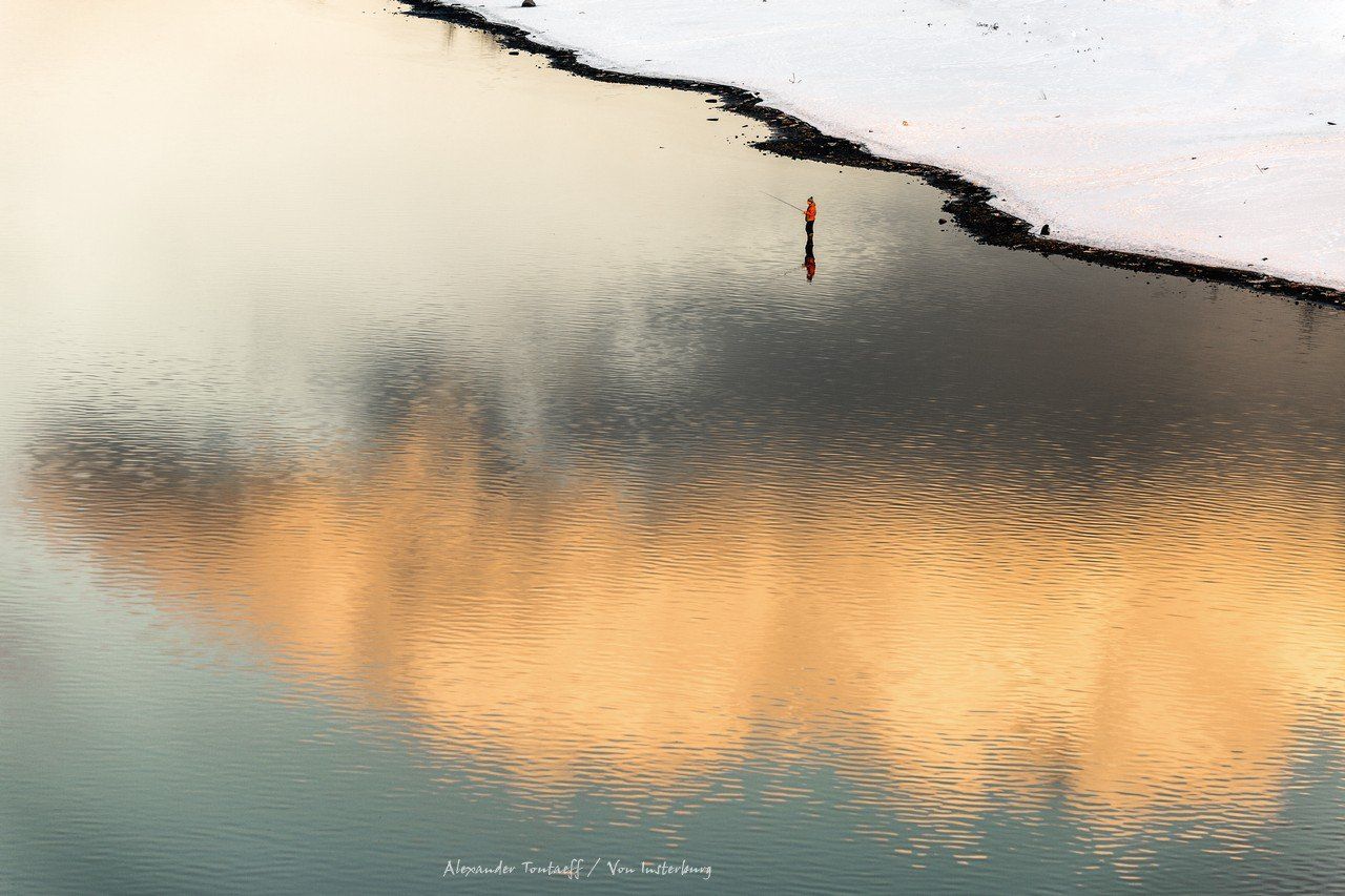 Люди, город, улица, жанр, река, вода, отражение, облако, рыбак, минимализм, человек,, АлександрТутаев