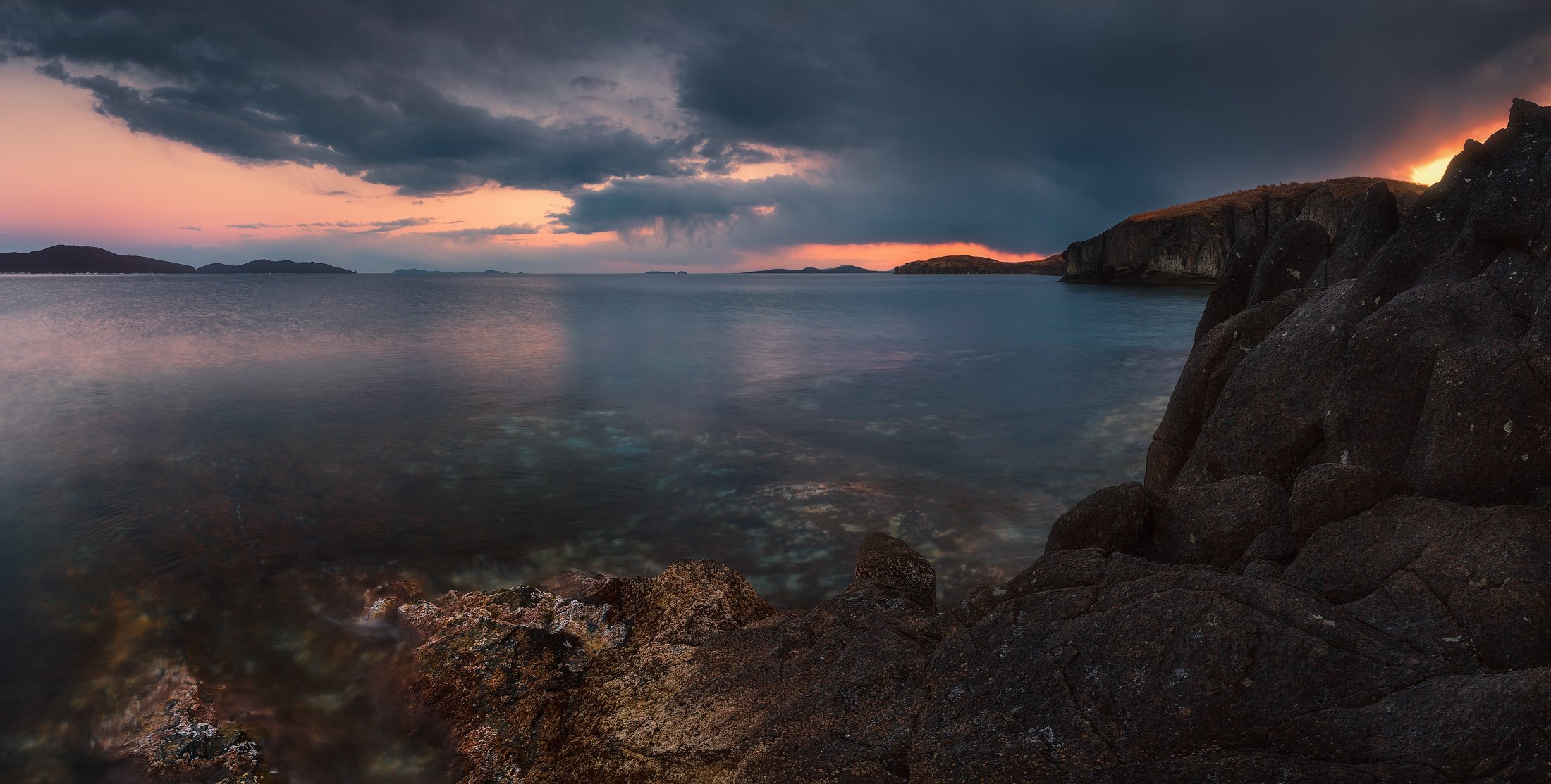 сумерки, скалы, море, камни, Андрей Кровлин