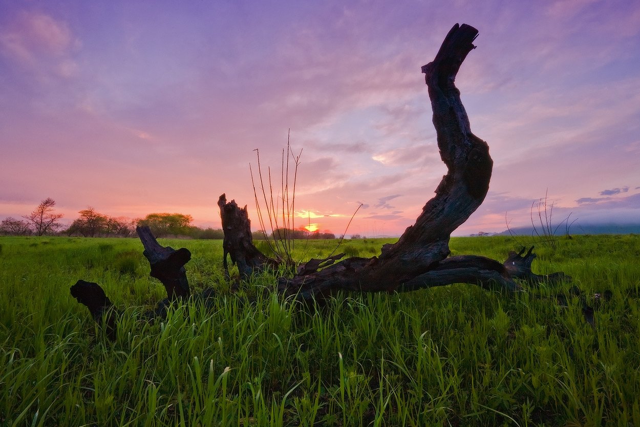 пень, весна, вечер, трава, небо, закат, Андрей Кровлин