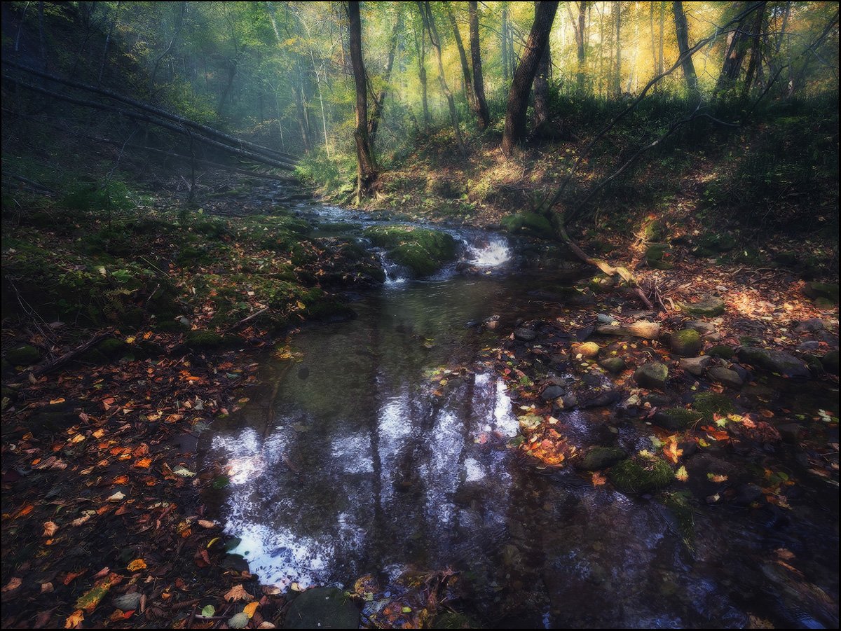 Деревья, Лес, Листья, Осень, Отражение, Речушка, Андрей Кровлин