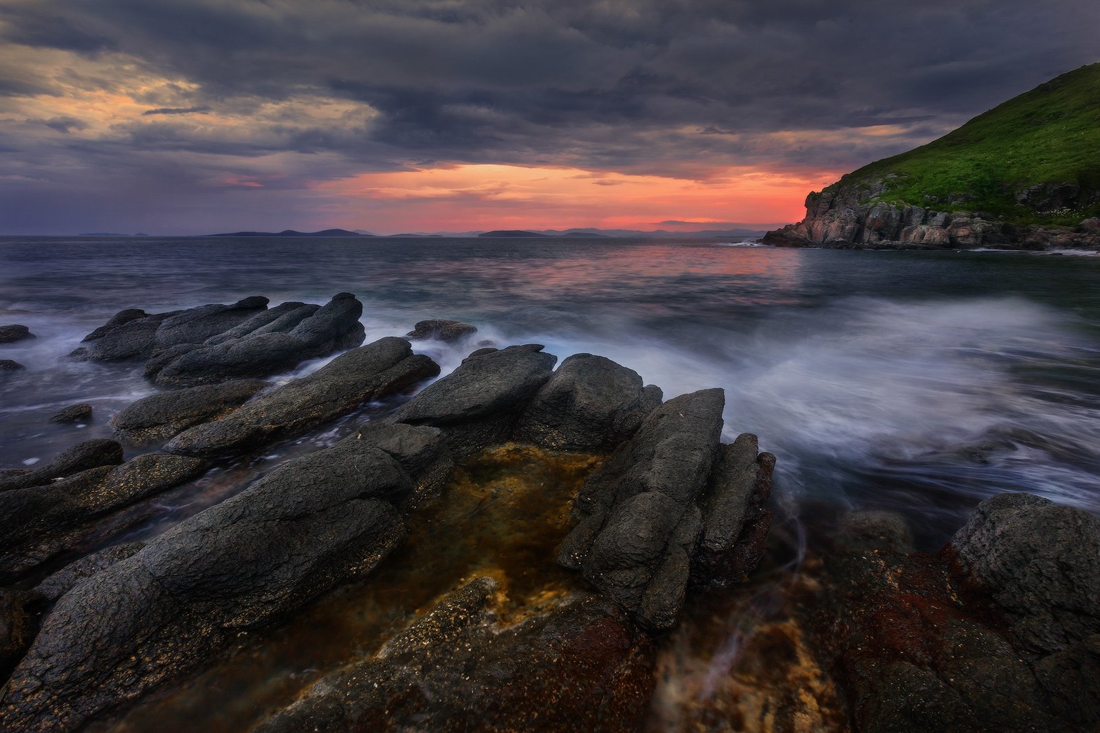 Вечер, Закат, Камни, Лето, Море, Скалы, Андрей Кровлин