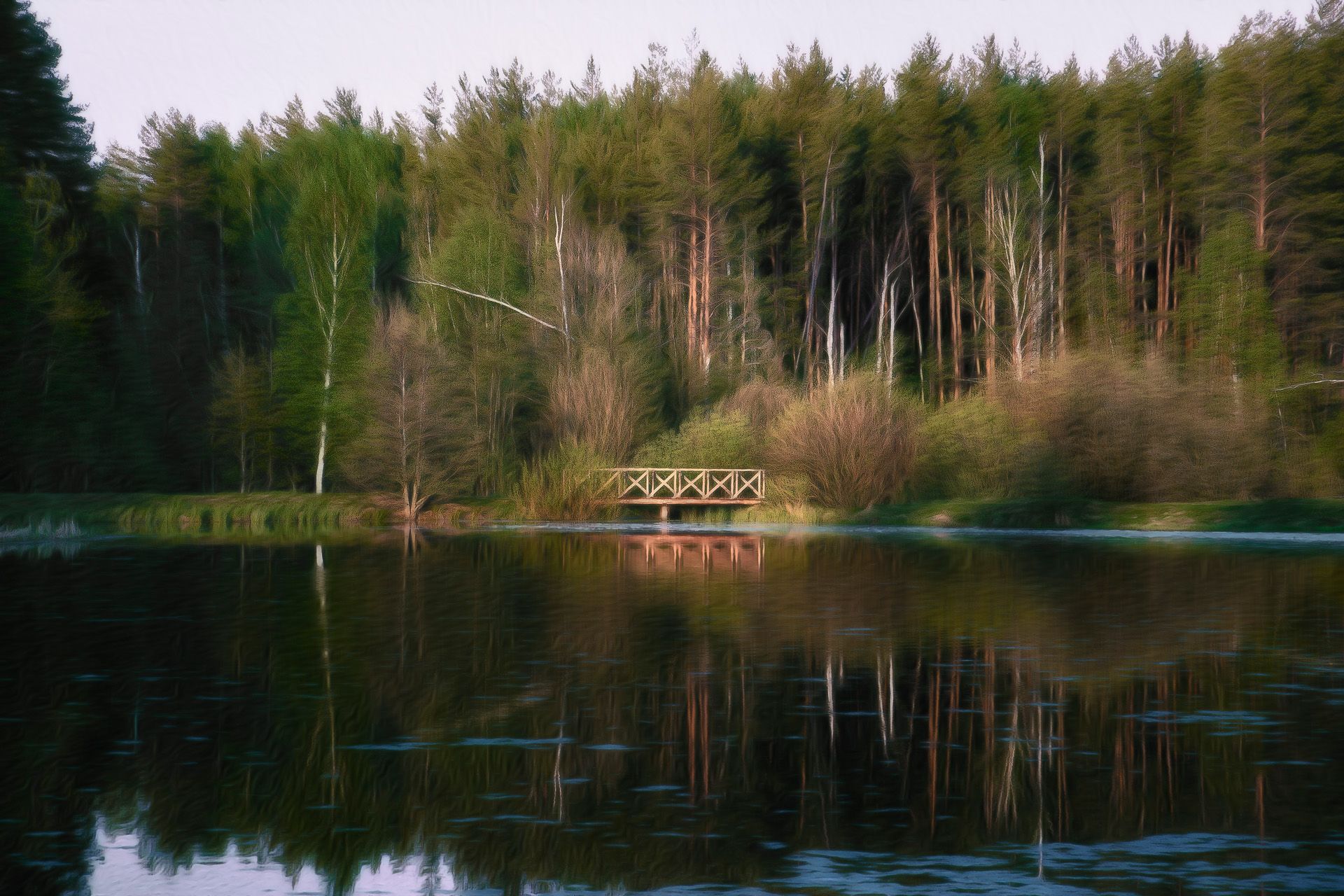 лес, мостик, озеро, Валерий Вождаев