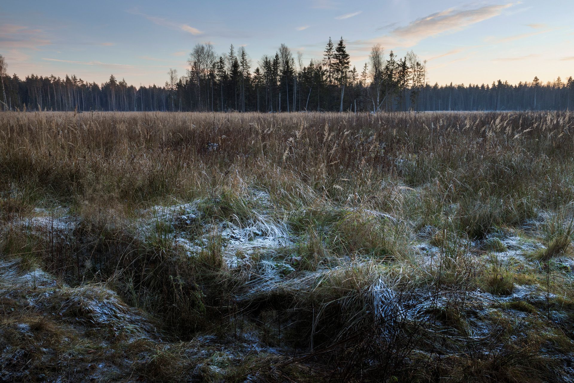 лес, деревья, осень, снег, пейзаж, Валерий Вождаев