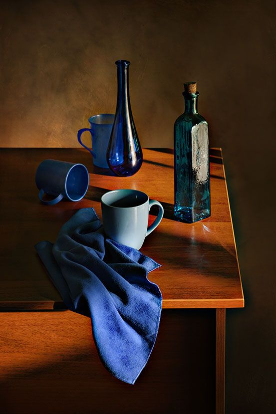 c синей посудой