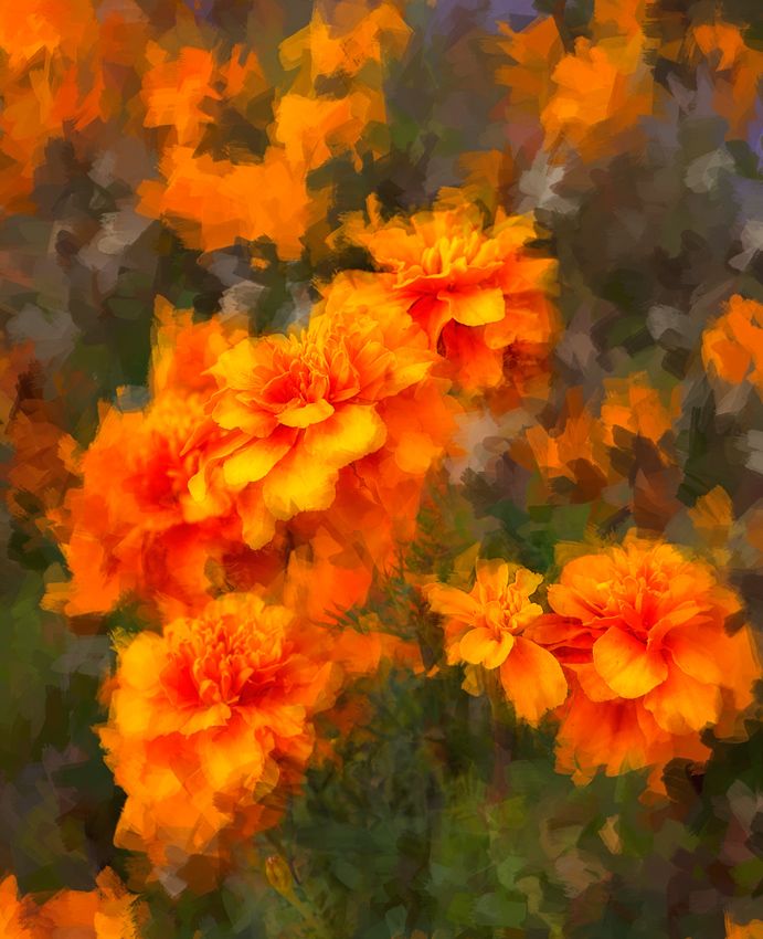 Это примитивно. Многие рисуют в фотошопе, но зачем? Я отрисовываю в Painter (здесь кисти работают совершенно по другому). Как правило, в автоматическом режиме, но своими кистями. Делаю несколько разных слоев, перекидываю в фотошоп и складываю в разных режимах. Попутно меняю плотность, часто фильтрую. В финале гармонизирую цвет в Topaz.