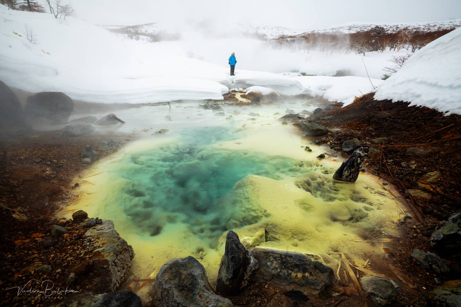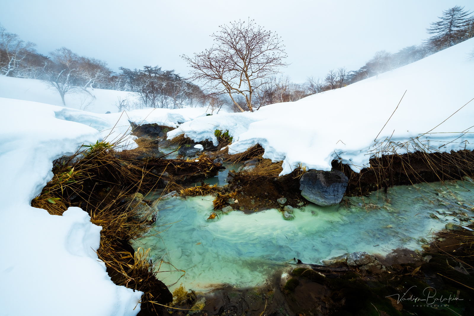 Ручей Кипящий у подножия вулкана Баранского, остров Итуруп, Курильские острова, март 2026. Фото - Вадим Балакин