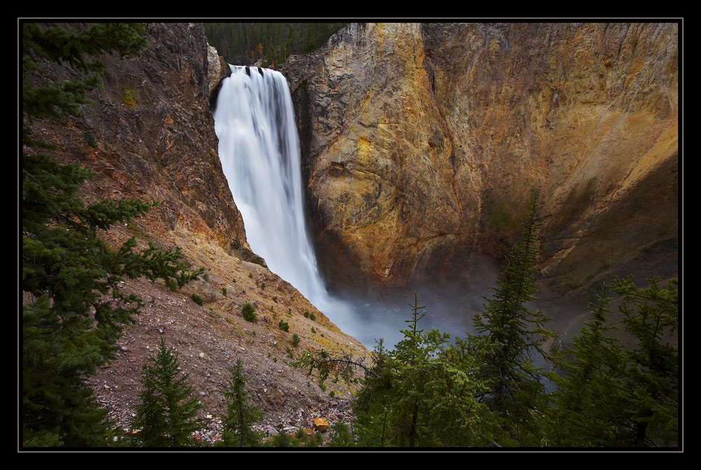 Lower Falls, Yellowstone National Park, Wyoming, USA Самый большой водопад в парке, находится в Grand Canyon of the Yellowstone River, находится на высоте 2,3км над уровнем моря, высота самого водопада 94м.