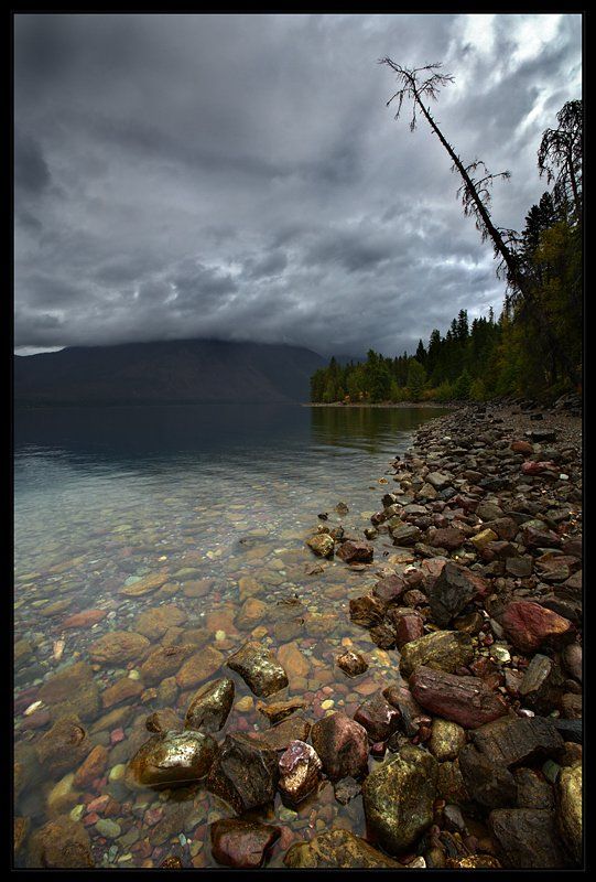 McDonald Lake, Glacier National Park, Montana, USA, September, утром после дождя, тучи еще не успели разойтись, зато какой солнечный денёк потом был - трудно поверить...