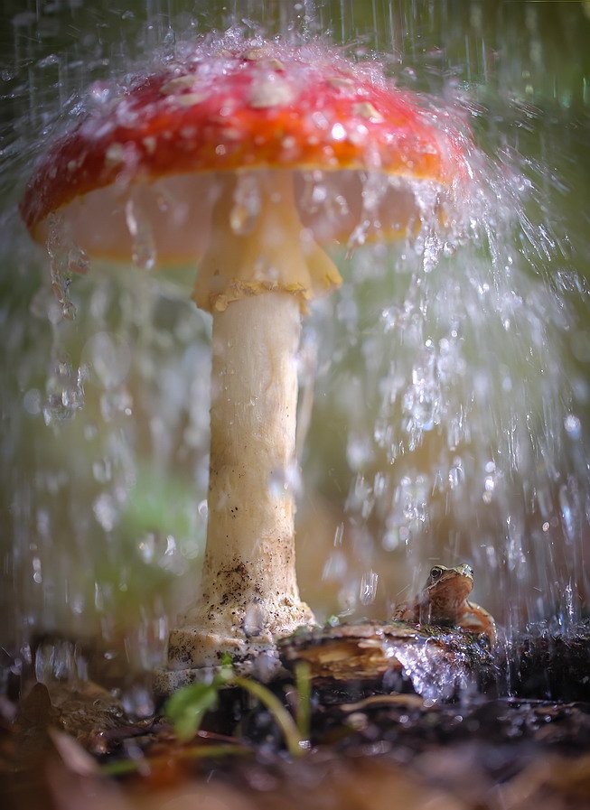 Там оранжевый манИт в своей свежести приятной,белых крапинок,где вид - грибникам уже понятный. От всего в природе толк и посильная защита - не грозит лягушке волк,что водою той умыта!