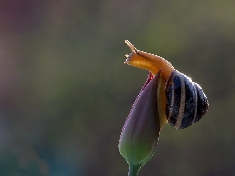 Какая чистенькая улитка... Что то это сразу бросилось в глаза.. Потому что когда не давно тоже снимала улитку, пришло домой, стала разглядывать и поняла, что все портит грязная раковина((( А у Вас Классный кадр!