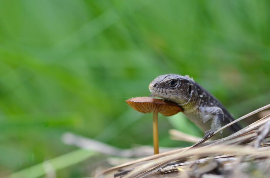 С одной стороны - весьма удобно, можно слегка расслабиться, положив голову на гриб ... да, и за грибом норка не так заметна, стратегия ... :-)