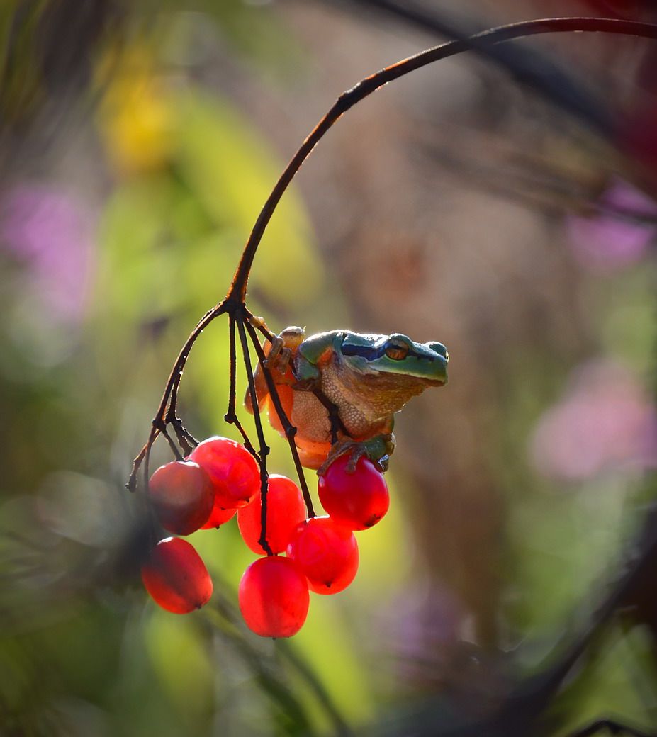 На калину я помог взабраться.но эти лягушки лазят по деревьям.