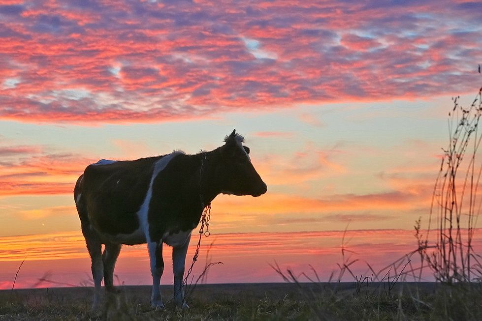Красивая коровка на закате!