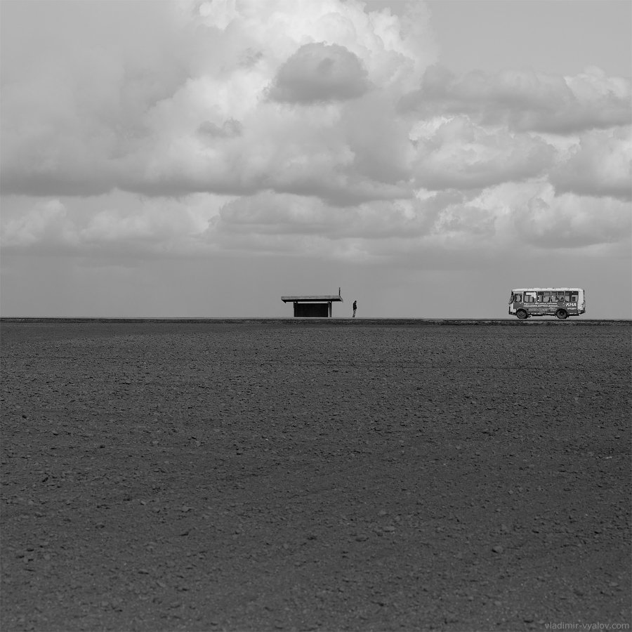поле, одиночество, автобус, остановка, Владимир Вялов