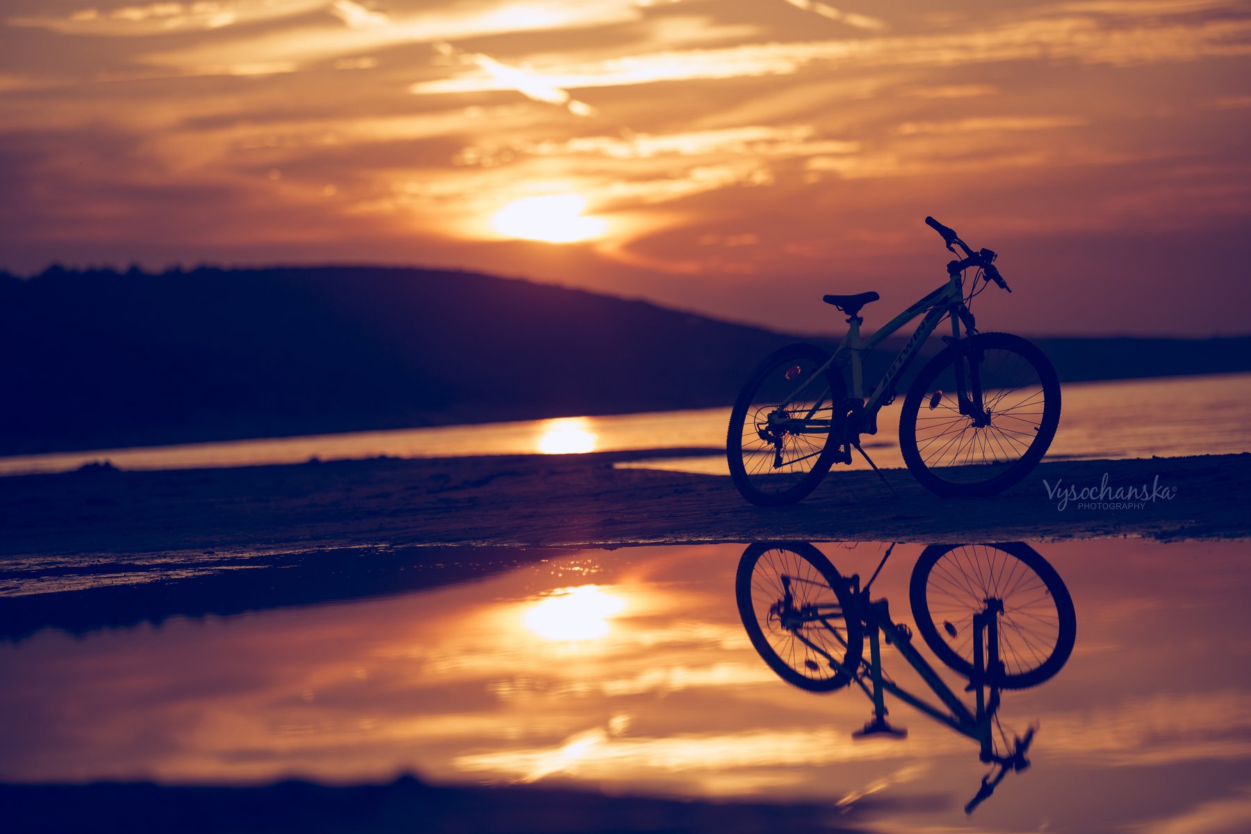 sunset, bicycle, sea, sand, evening, steel life, Vysochanska Photography