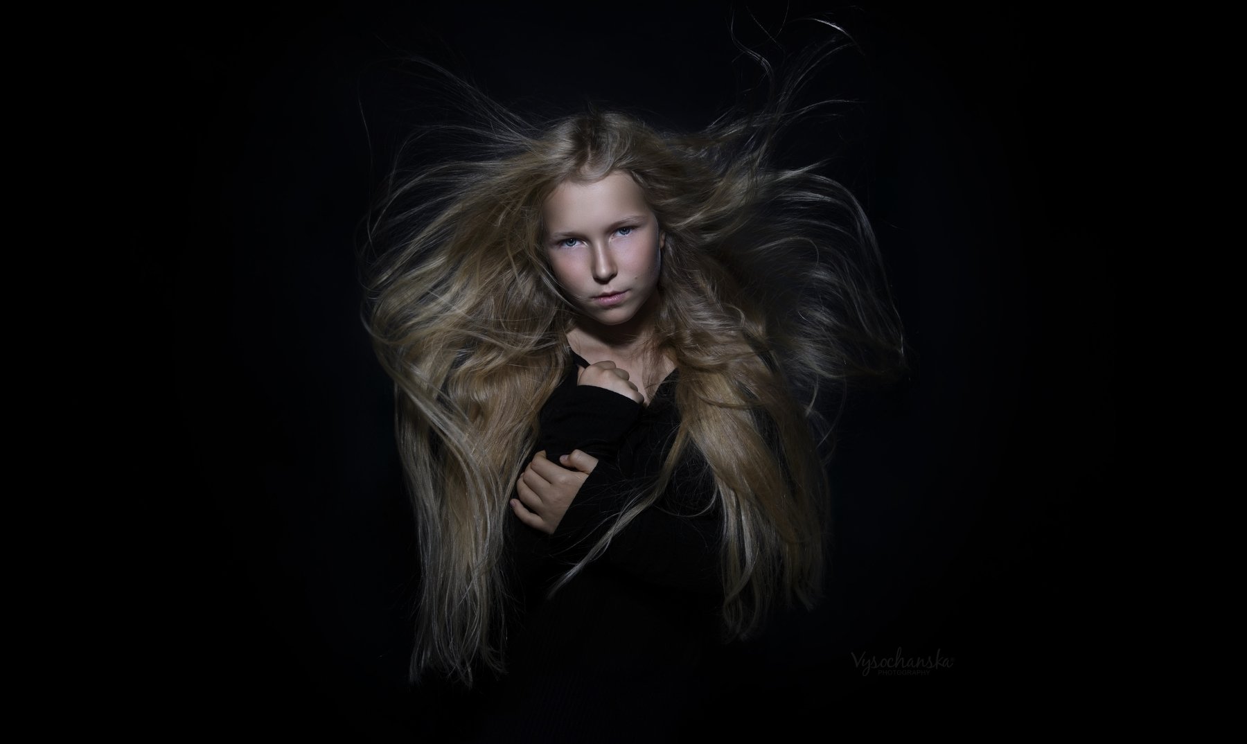 girl, portrait, long hair, blond, Tetyana Vysochanska