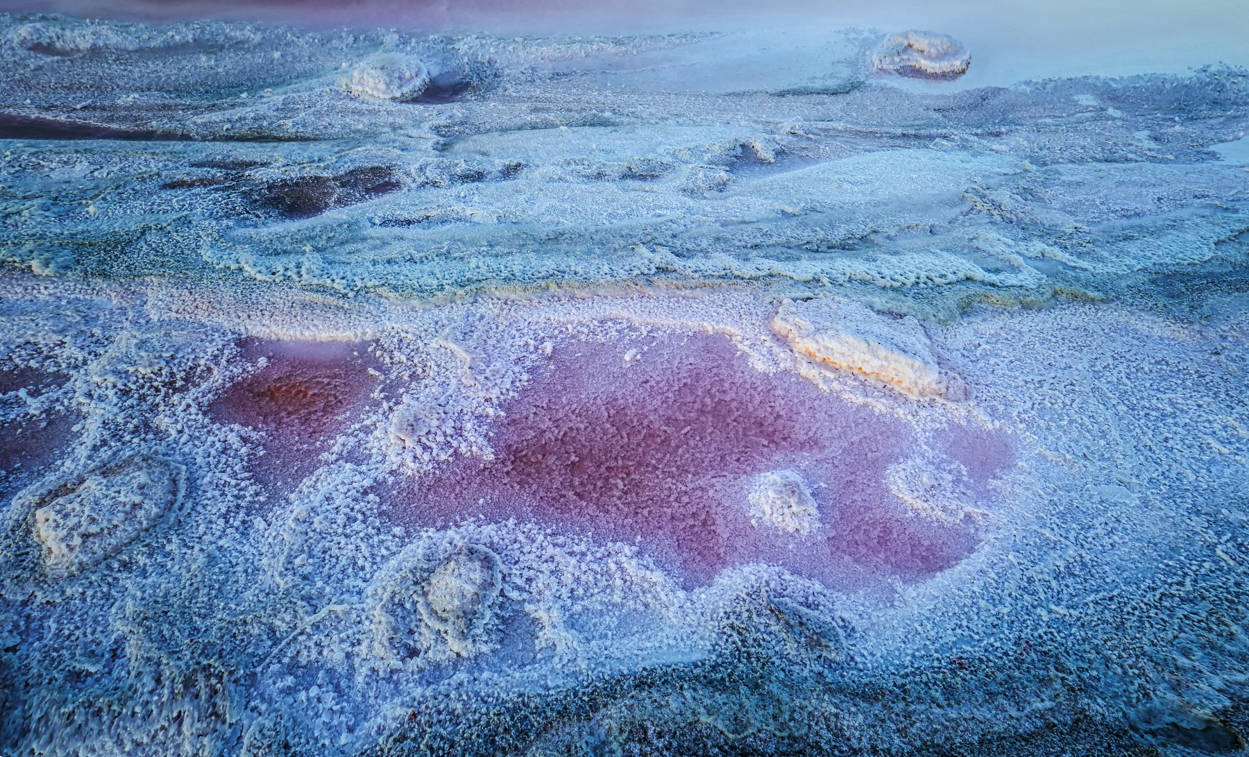 Кояшское озеро рисует удивительные узоры...солью. Летом, когда озеро высыхает, микроорганизмы придают воде и соли озера розовый оттенок, а закат еще больше усиливает розовые цвета. Крым, заповедник Опук