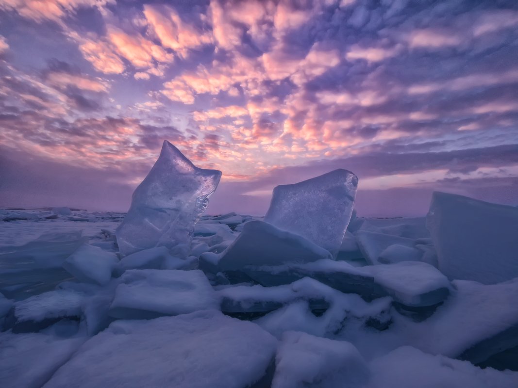 Еще один красивейший байкальский закат. Еле успели, чтобы заснять это фантастическое небо. И не важно, что мороз уже почти доходил до отметки 20.. мы все снимали, лежа на льду, боясь упустить каждый момент этой красоты.