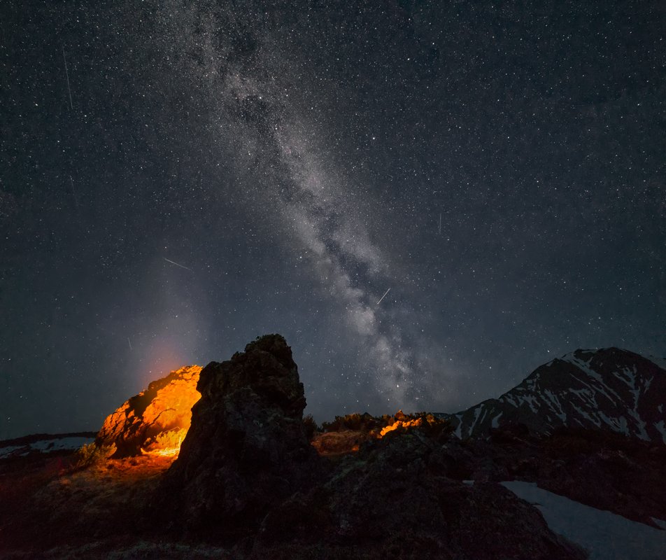 Штурмуя целый день крутые перевалы, борясь с полчищами суровых комаров, наша команда и не предполагала в завершение дня получить шикарный подарок от Матушки-Природы - увидеть ТАКОЕ представление!