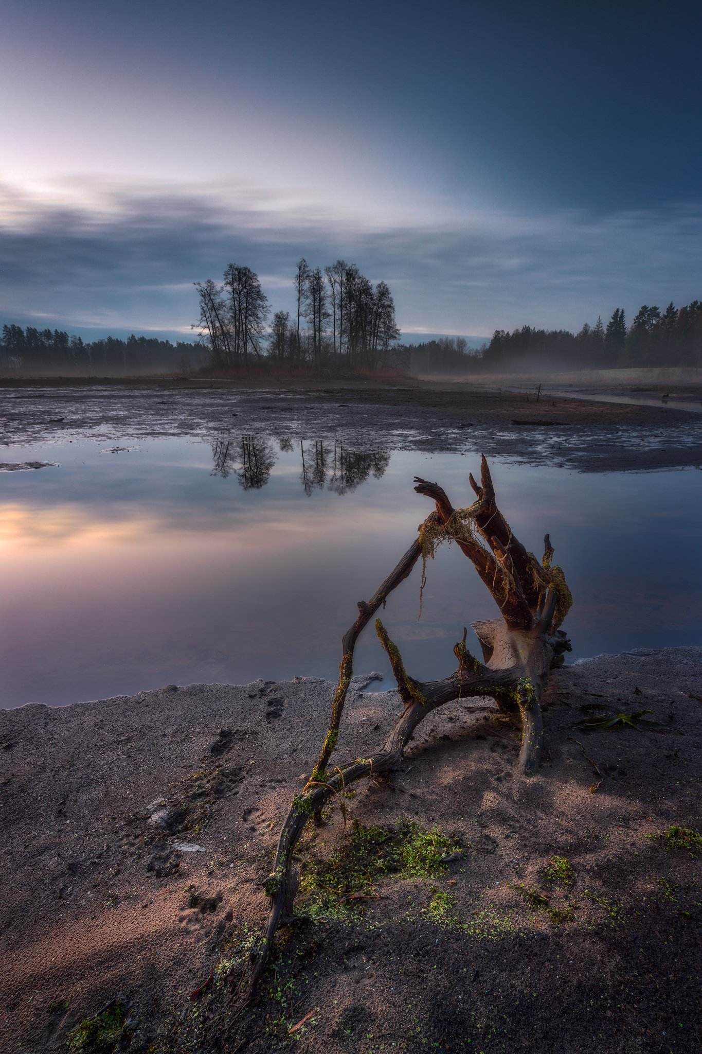 lake poland podlasie dawn sunrise sky clouds water colors mood komosa trunk, Maciej Warchoł