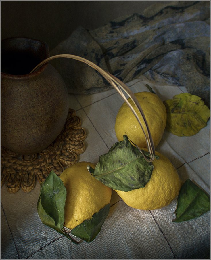 Интересна фактура поверхности листьев лимонов. Она похожа на муаровую ткань,которая переливается оттенками зелёного на свету.